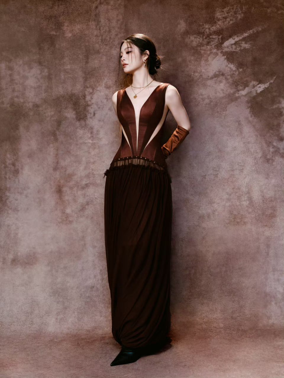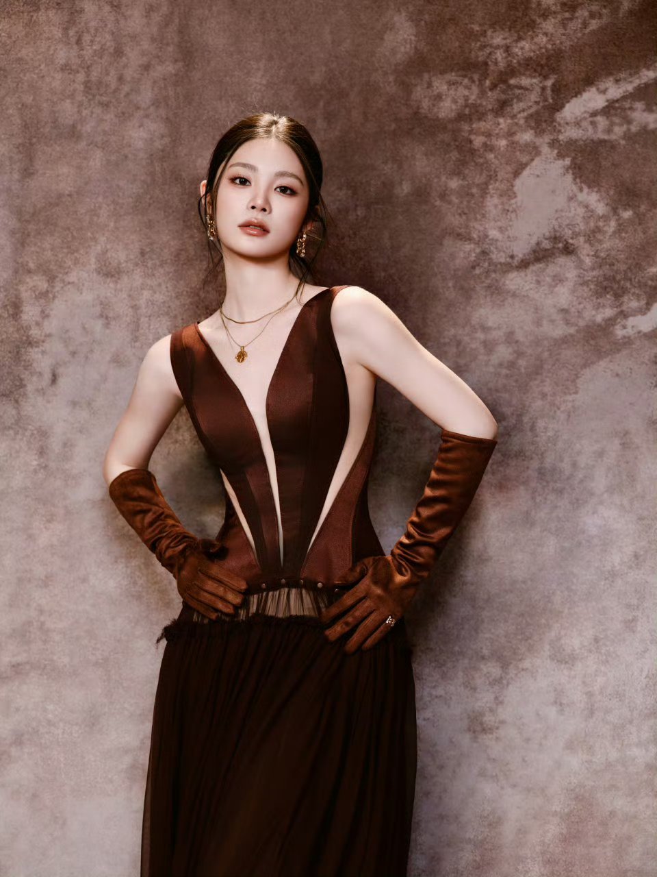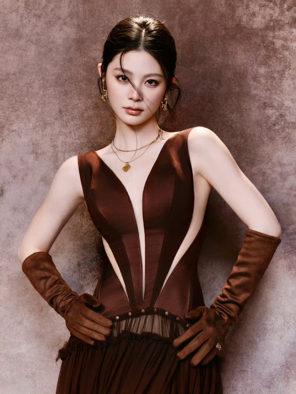 杨幂这身胸前设计挺别致,她穿什么都好看,