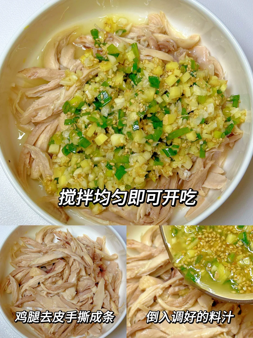 今天给家人们分享一道广式葱油鸡,好吃到哇塞!肉质鲜嫩美味,简单的食材也能做的这么美味!家人们真的巨巨巨好吃😋,快来试试吧! 🥗食材:鸡腿3个、姜末、蒜末、葱花 🥘做法:如图所示