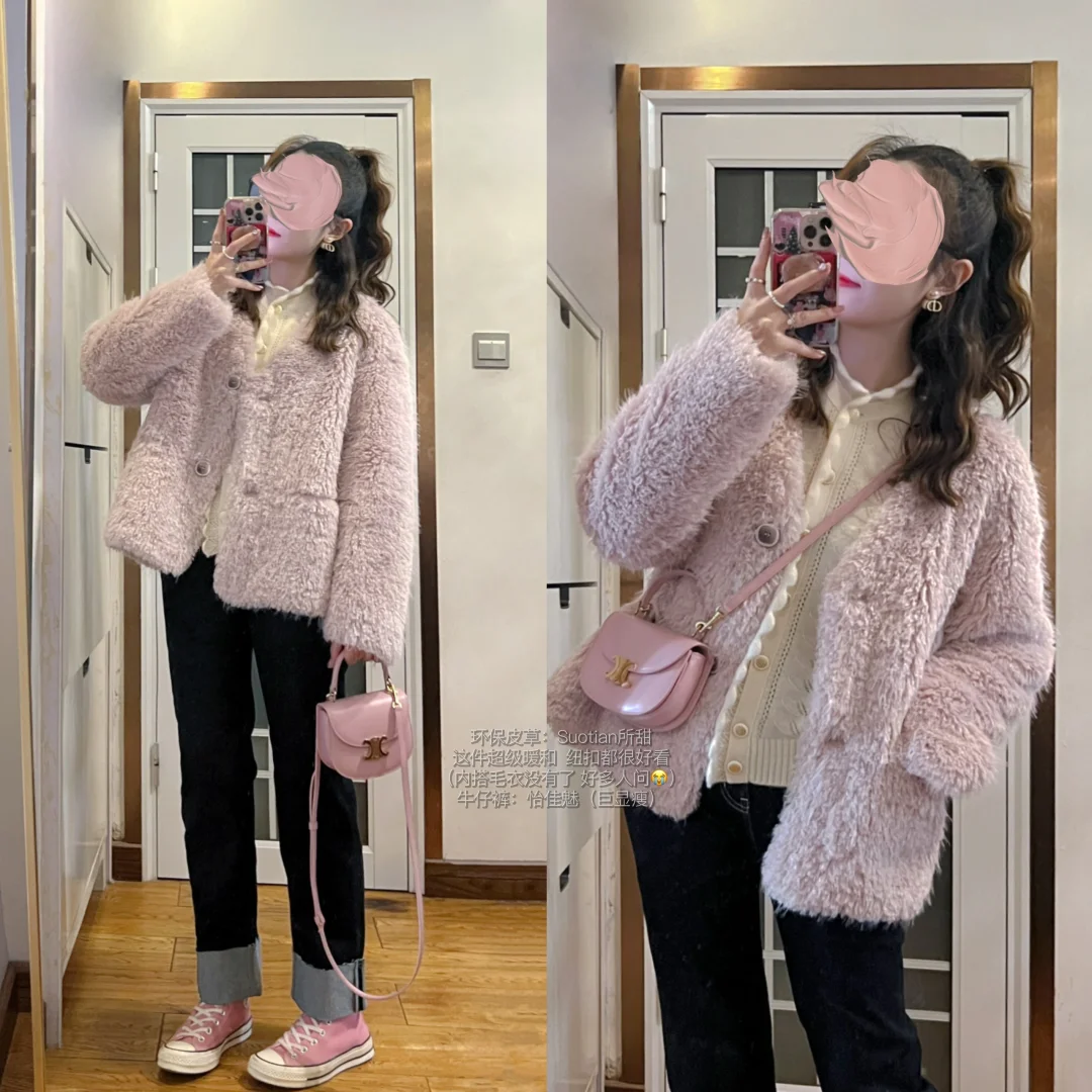 秋冬离不开羊羔毛外套!卷毛长靴太显瘦啦!