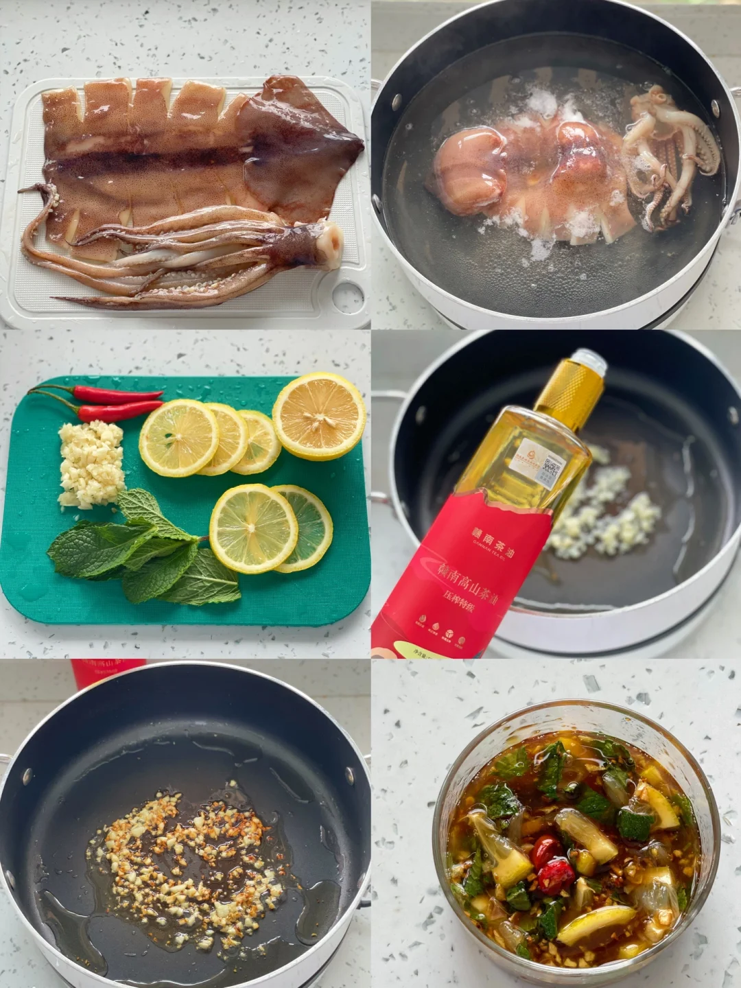鱿鱼|柠檬|薄荷叶|小米辣|蒜末|蚝油|生抽