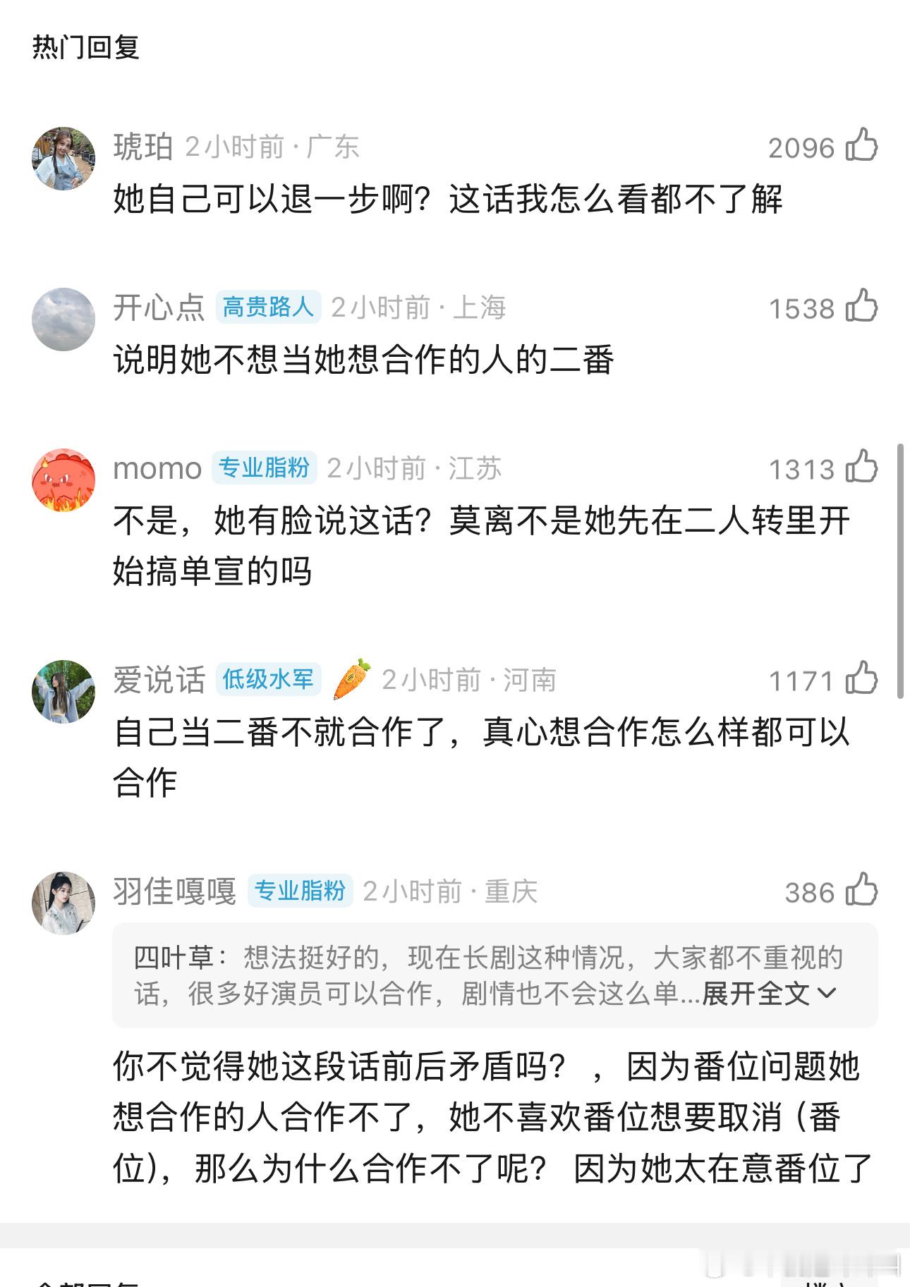 白鹿聊番位这件事,目前褒贬不一。 白鹿曾因番位之争错失想合作的演员