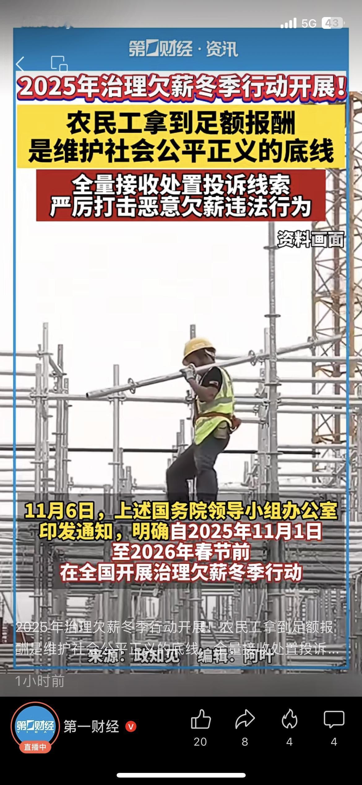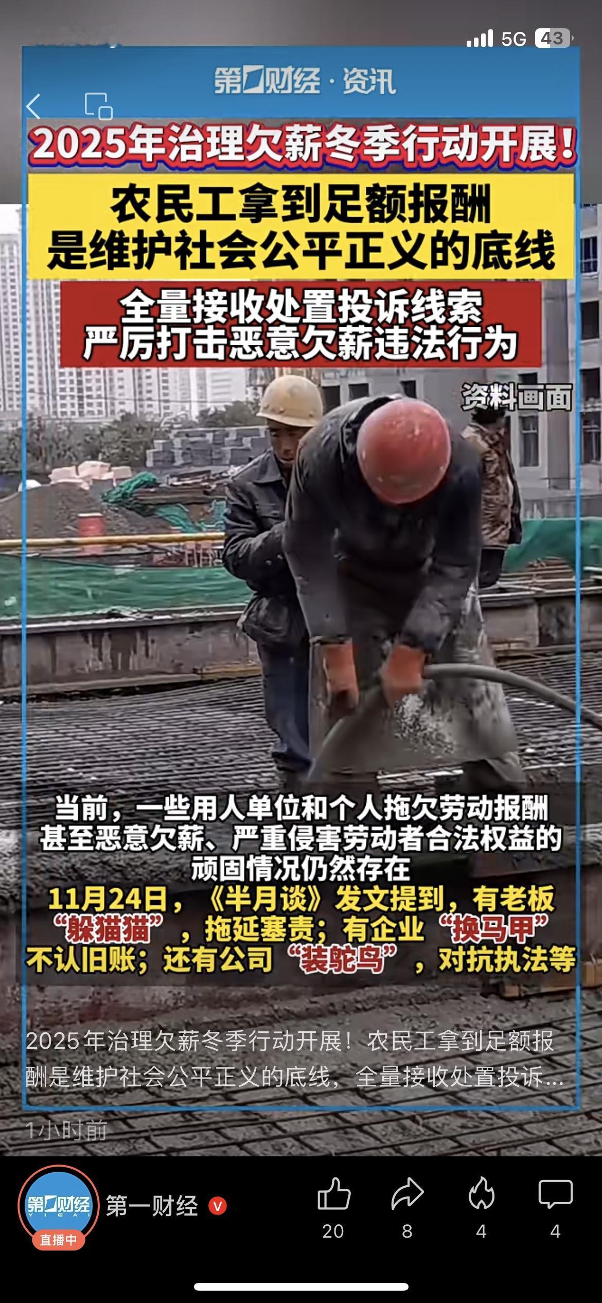 欠薪老板要慌了!全国冬季严打欠薪,春节前必结清! 农民工兄弟的工资有保障了!全国治理欠薪冬季行动已启动,到2026年春节前,恶意欠薪的老板要被“地毯式”严打——不管是老板“躲猫猫”、企业“换马甲”,还是转移财产,一律从重处罚,还会列入黑名单! 之前见过老乡辛苦一年拿不到工资,过年都没脸回家,现在这行动太及时了!你们身边有被欠薪的情况吗?觉得这波能彻底根治欠薪吗?治理欠薪 农民工工资 冬季欠薪整治公司欠薪 欠薪老板 欠薪欠款