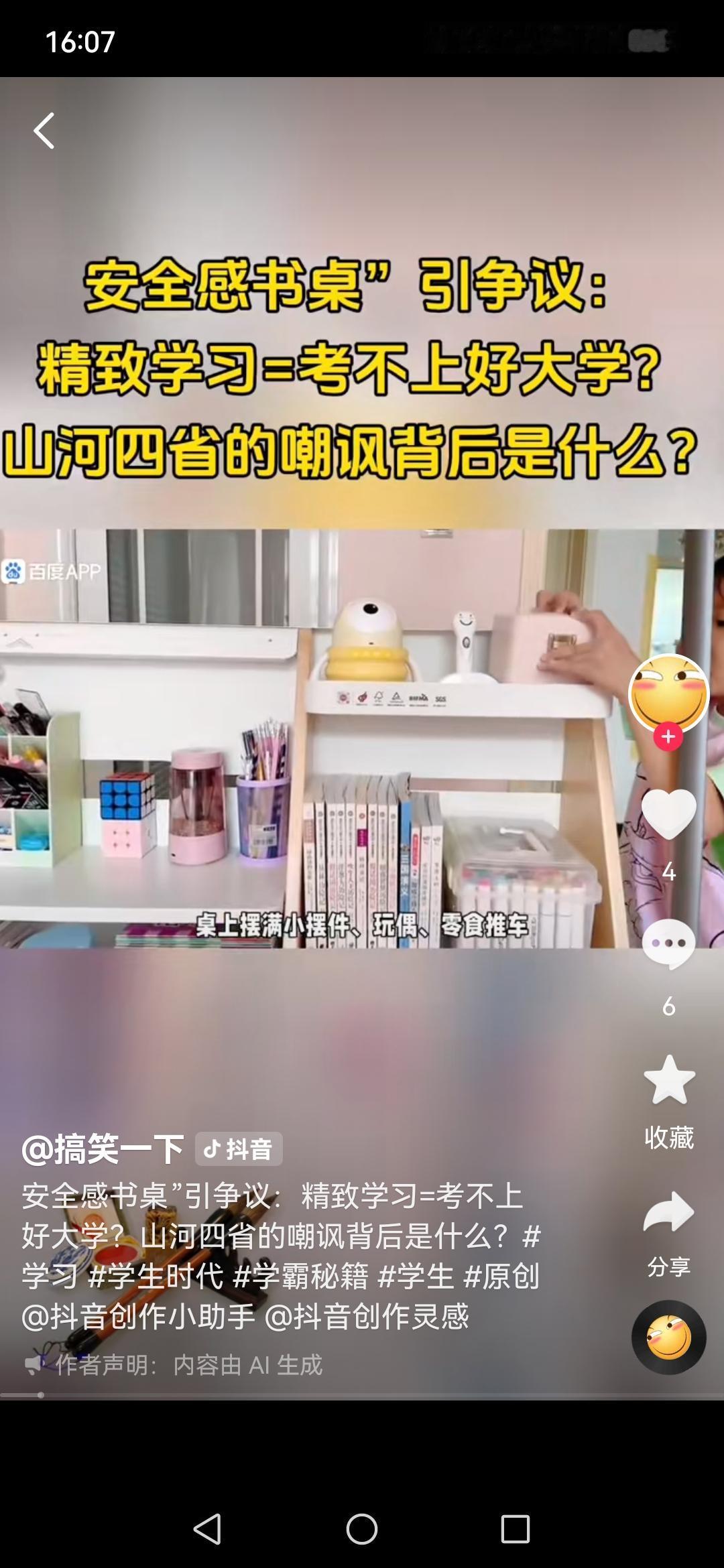 高三“治愈系书桌”火了,一边是解压小窝,一边是“考大专”的质疑 坐标某新高考省份的高三教室,一张被课本围成“小城堡”的书桌突然刷屏:暖乎乎的披肩搭在椅背上,抽屉里塞满了各种口味的小零食,就连课本缝隙里都夹着解压玩偶,女生笑着称这是她的“高三安全感基地”。 可照片传到网上,外省尤其是山河四省的同学却集体摇头,评论区齐刷刷飘过“这配置,一看就是奔着大专去的”。在他们的课桌里,除了试卷、错题本和速溶咖啡,连块多余的橡皮都少见,更别说占地方的零食和玩偶。 没人注意到,女生的书桌虽然堆满东西,却在正中间留了整洁的书写区,零食也只在课间才会拿出来,她只是想在高压的高三里,给自己留一点喘息的小空间。反观那些嘲讽的评论,其实藏着不同高考赛道的无奈——山河四省的考生,连喘息都要掐着时间。 后来女生悄悄把玩偶换成了计时器,零食也只留了课间补充体力的能量棒,一模成绩反而涨了40分。她用行动证明,安全感不是靠堆砌物件,而是在紧绷的节奏里,找到学习和情绪的平衡。 这场书桌之争,从来不是“精致”和“朴素”的对决,而是不同考生对“高考安全感”的不同注解。有人靠分数找底气,有人靠小确幸稳心态,本质上都是为了跨过那座名为高考的山。热点话题 治愈系书桌