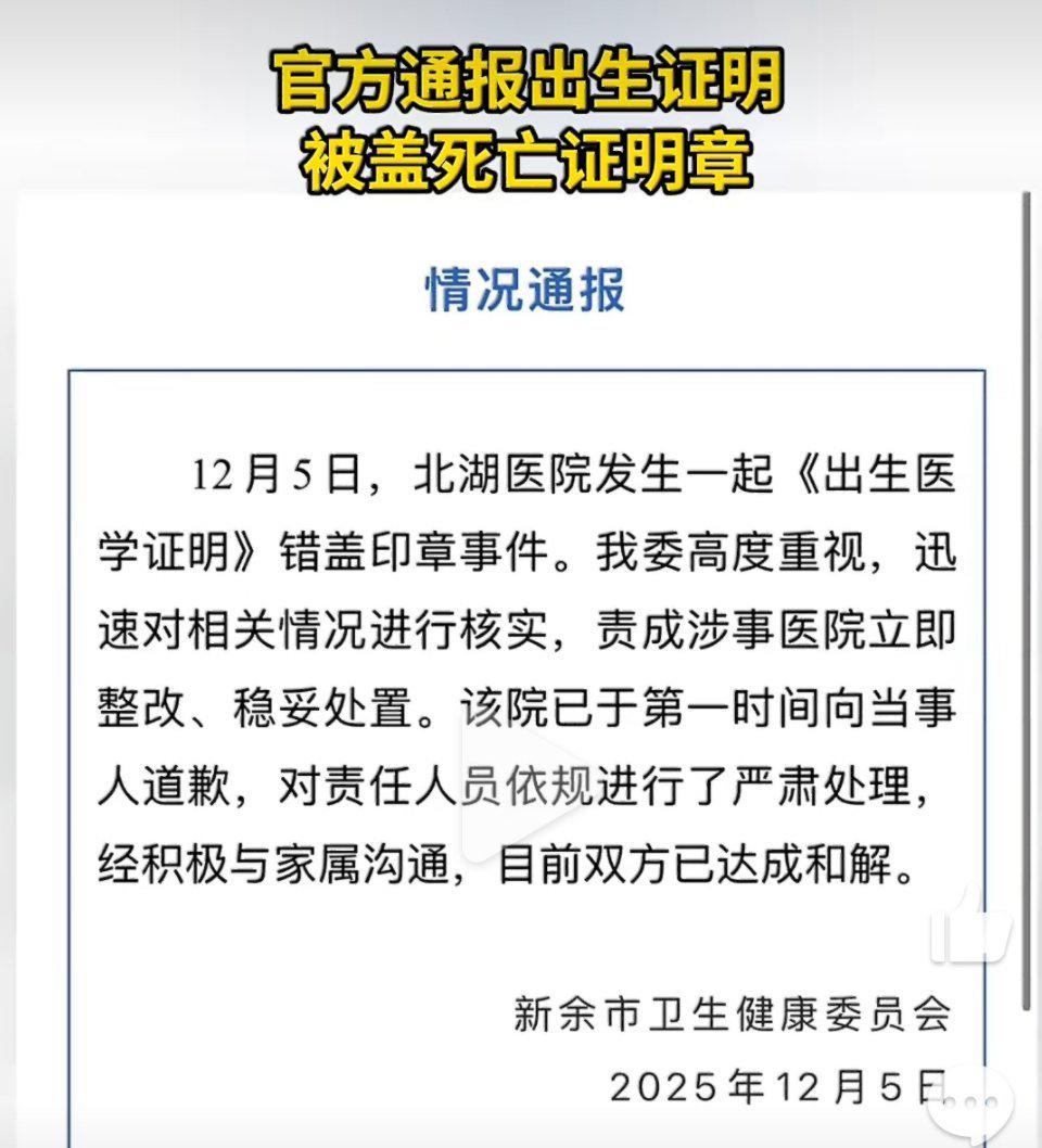 真是活久见!给新生宝宝办出生证,结果上面赫然盖着“死亡证明”的大红章! 江西这位爸爸当场气炸——全家正欢天喜地迎小生命呢,一盆冰水从头浇到脚。 医院光道歉有用吗?生死印章都能搞混,简直荒诞到离谱! 这哪是“手滑”,根本是管理漏洞大到漏风。网友炸锅:这是对生命最基本的漠视! 孩子家人坚持先追责再补证,太能理解了。证能重开,可这糟心事儿谁赔? 恳请所有医院都上点心吧:生死文书分开放,盖章至少两人看,别让这种荒唐事再伤人心了! 万能生活指南 冬季生活打卡季