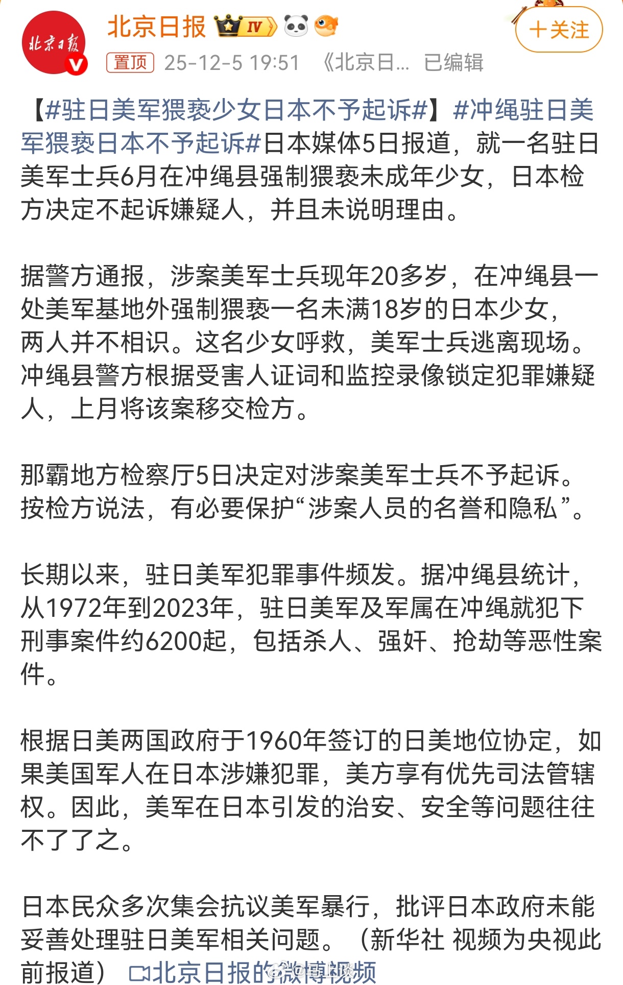 讲个笑话,驻日美军猥亵少女案日本不予起诉~“我们究竟离文明还有多远?”~