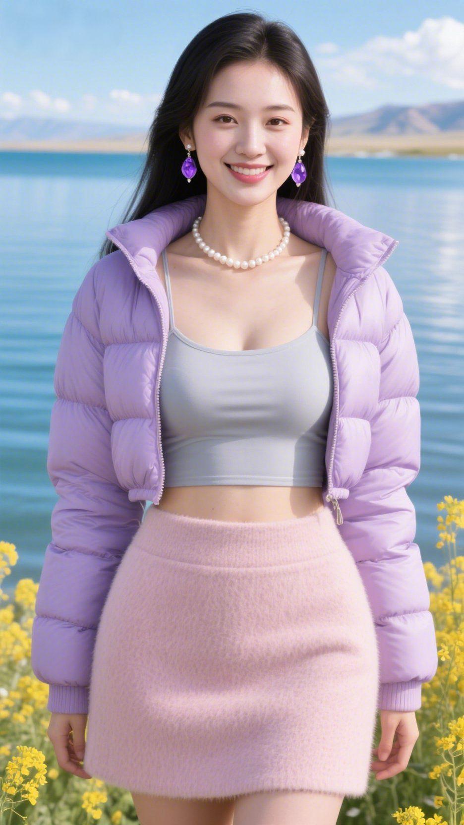 风栖湖畔间 湖畔的风携着山野的清宁,漫野的金黄花簇铺展在水天之间,浅紫的衣袂衬着澄澈的湖水,自成一幅温柔的画。她眉眼间的笑意,如湖面轻漾的波纹,干净又舒展。 我们总在琐碎的日常里步履匆匆,忽略了自然赋予的温柔,忘了停下脚步感受风的轻拂、水的澄澈。而此刻,远山如黛,湖水如镜,这份与自然相融的美好,让心也跟着慢下来。 不必追赶时光,不必囿于纷扰,只需静立此间,让心绪随清风舒展,便懂了生活最美的模样,从来都在当下的每一寸温柔里。 自然之美 岁月清宁