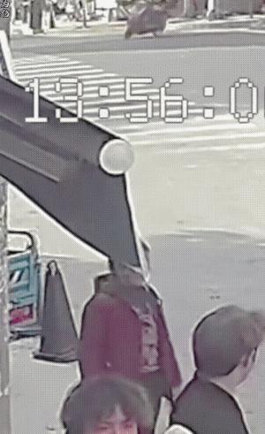 大车在斑马线前也没有减速,这也跑的太快了。 外卖小哥过斑马线也不考虑大车会不会不减速,硬过。 还好!外卖小哥反应敏捷,并且也不是爱财的主,扔下摩托车就快速的闪离了。 大车快,也快不了了;外卖小哥急,急也走不了了。也好!俩人可以反思了。