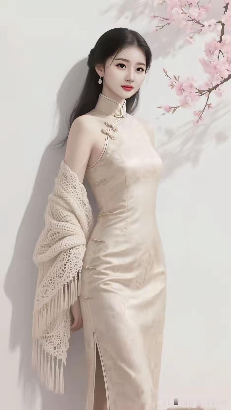 殿前欢·旗袍樱韵 韵悠悠, 杏袍柔衬雅姿留。 蕾丝披帛风情厚。 樱影盈眸。 枝斜映画楼, 香盈袖, 玉耳添娇秀。 风华古韵, 浅笑含愁。