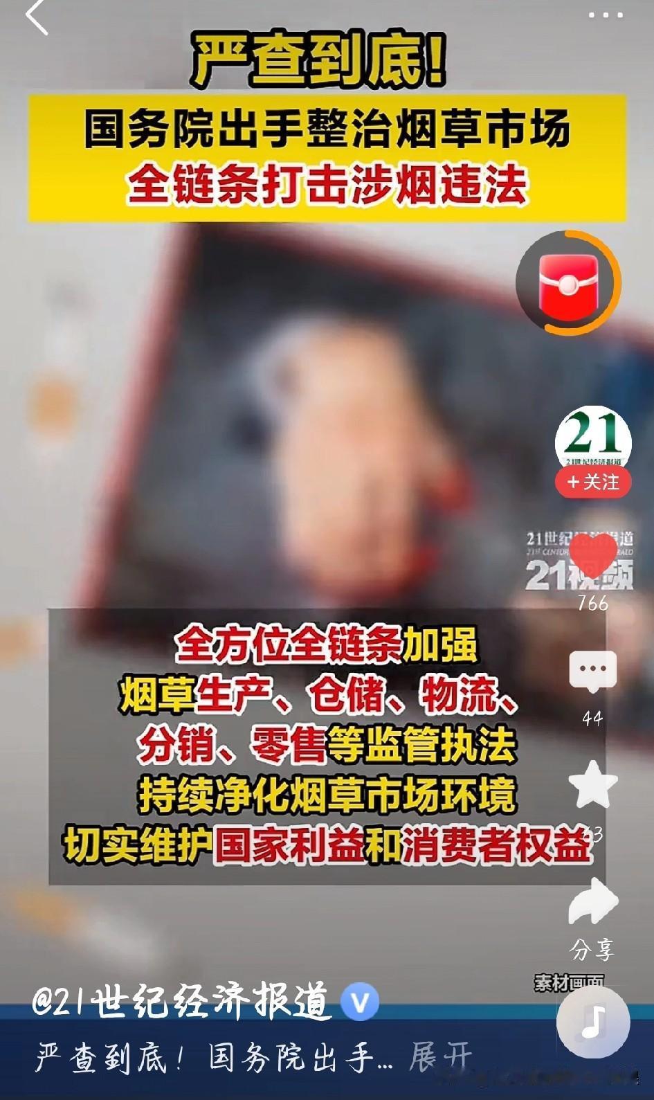 国务院这波整治烟草市场,太接地气了! 最近不少人吐槽,市场上假烟、走私烟不少,还有天价烟炒作,买包放心烟都难,甚至有人买到假烟伤身体。现在好了,国常会直接部署全链条打击,从生产、物流到零售,每个环节都严查。 公安、市场监管、邮政等部门联手行动,堵死非法渠道,不管是地下制假窝点,还是无证经营、物流走私,全都往死里打。这不仅是护着消费者健康,更是维护市场公平,不让不法分子赚黑心钱。 整治力度这么大,以后买烟更放心,市场也更干净。支持国务院严查到底,把这些烟草市场的乱象全清零! 烟草市场整治对烟草价格有何影响 提高香烟的价格能起到禁烟的作用吗 烟草行业 烟草政策大变天 假🚬烟 烟草行业黑幕 烟草专卖政策 国务院出手整治烟草市场 图片截图于21世纪经济报道