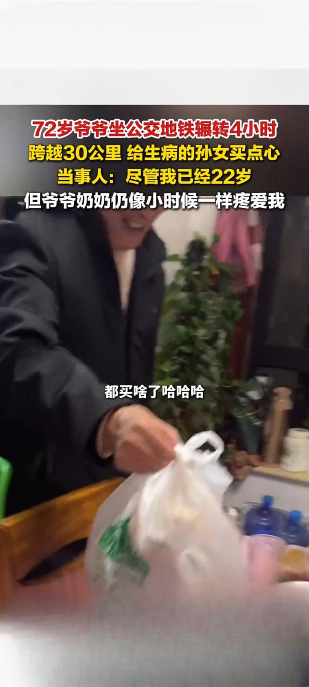 七旬老人奔波30公里为孙女买点心 跨越距离的爱感动万千网友 近日,一则记录北京一位72岁老人为生病孙女购买点心的视频在快手平台温暖传播,播放量达1.2万次,展现了感人至深的隔代亲情。 据报道,这位年过七旬的老人得知生病的孙女想吃某种点心后,毫不犹豫地从家中出发,往返奔波超过30公里,专程前往购买。当孙女收到这份跨越半个城市的点心时,深受感动。她在视频中表示:“感到很骄傲,爷爷还像小时候一样疼我。”朴实的话语背后,是老人从未因岁月流逝而改变的对孙辈深沉无私的关爱。 这一平凡举动迅速引发网友共鸣。许多网友留言分享自己长辈类似的暖心故事,感叹“无论长多大,在爷爷眼里永远是孩子”、“爱从来不分远近”。老人不辞辛苦的背影,不仅承载着对孙女具体的关怀,更象征着中国家庭中长辈默默付出、不求回报的深厚情感传统。 在快节奏的现代生活中,这份跨越数十公里、只为满足孩子一个小小愿望的执着与疼爱,显得格外珍贵与动人。它提醒人们,最真挚的情感往往就蕴藏在日常最朴素的行动之中老人暖心瞬间 隔代温情故事 暖心隔代情