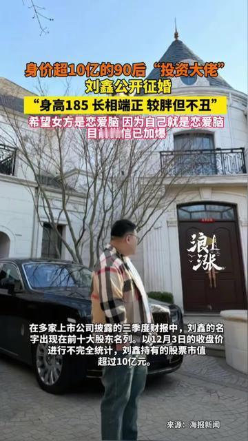 身价10亿的90后投资大佬征婚,居然要找恋爱脑?我直接看懵了! 你以为投资大佬都算回报率?刘鑫说自己是恋爱脑本脑,以前谈恋爱凌晨3点飞3小时见对方,推过百万项目陪对象。他不要粘人傻白甜,要的是敢全情投入爱的人。 有人说他装人设赚流量,也有人说这才是清醒的恋爱观,把真心当硬指标,比谈车房实在。 咱们普通人谁没藏过恋爱脑?怕受伤才裹紧心,可大佬反而把敢爱变成稀缺品,这波反套路,我居然有点羡慕。 现在他微信都加爆了,你们说他是要真心还是另一种投资?如果是你,会因为这个条件加他吗?