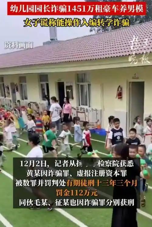 90后园长狂骗1451万!租豪车养男模挥霍,有人804万血本无归 (个人观点仅供参考,无任何不良引导) 江苏镇江扬中刚宣判一起离谱诈骗案 90后女子黄某顶着幼儿园园长和人力资源公司老板的双重身份 4年骗了10人1451万 赃款全花在租豪车豪宅买奢侈品 甚至包养男模上 最终被判13年3个月罚金112万 两名同伙也一同入狱。 黄某早年经营幼儿园亏了200多万 不想踏实还债反而动了歪心思 开人力资源公司时靠虚假走账骗来验资报告 违规拿到经营许可 还拉来同伙毛某征某分工演戏 一人扮“总指挥”揽活 另外两人冒充“秦主任”“毛主任”等虚构角色 用多个微信号配合忽悠 专挑想走捷径的人下手。 他们的话术精准戳中痛点 声称能包办孩子转学体制内入编 甚至保住公职安排新单位 先收小额好处费稳住对方 再不断索要打点费赞助费 一步步榨干受害者钱包。受害者程某为女儿转学和自己入编 前后被骗100多万 最后只拿到伪造的聘用合同。最惨的陈某面临双开危机 被黄某忽悠着保住公职再安排新单位 变卖房产四处举债 累计被骗804万余元。 这些沾满血汗的钱 没一分用于正当经营 全被黄某用来挥霍 豪车换着租 奢侈品堆满衣柜 日子过得比明星还潇洒。司法机关核查发现 黄某不仅犯诈骗罪 还涉嫌虚报注册资本罪 目前已追缴50余万元赃款。 要知道 子女转学有严格的申请条件和法定程序 体制内入编更是没有花钱就能办的内部渠道 类似的骗局各地屡有发生 都是利用了急功近利的心理。黄某蹲大牢纯属咎由自取 可受害者的损失难以挽回 你觉得这样的刑期够震慑骗子吗 遇到声称能走后门办事的人 你会信吗女孩骗男友案
