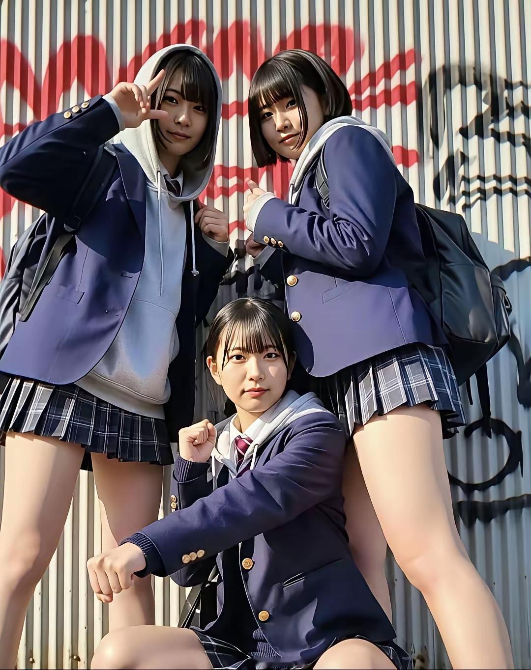 校服藏着的青春疯癫,是和姐妹并肩的底气。涂鸦墙前摆开的架势,把少女们的热血与默契,都定格在这帧热闹的画面里,我们的故事,永远热烈鲜活。