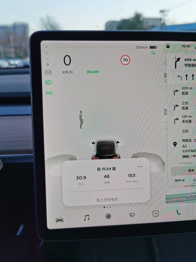 北京冬天能耗就这 大雪之后好冷!新提的车没俩月,玻璃被不明颗撞裂了!心更冷!今天去修车之前特地跑了一下能耗!室外2度,市内路况,20度空调,跑了30公里,能耗大约150左右。 不知道是ota升级的缘故还是天冷了,抬油门减速效果没以前明显啦!得注意踩刹车。单踏板的减速力度不稳定呀