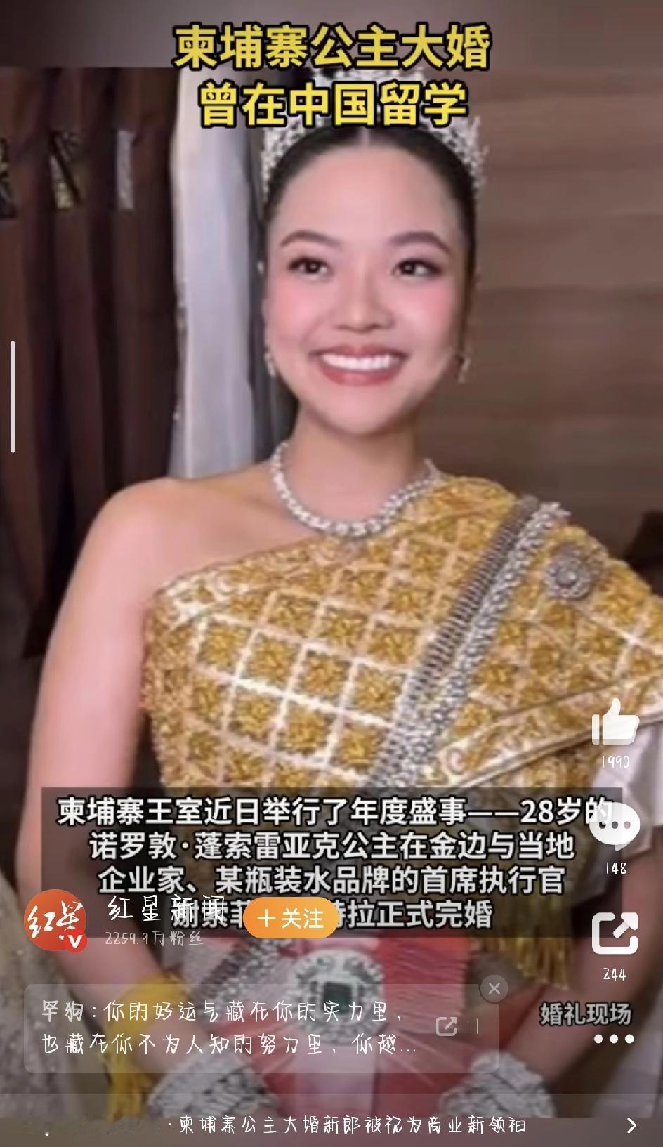 最近东南亚的大热门事件,28岁的诺罗敦·蓬索雷亚克公主在金边办了场超盛大的婚礼,新郎是当地有名的企业家谢索菲亚克特拉,人家还是个瓶装水品牌的CEO,这场联姻直接成了整个地区的焦点话题。 其实早在今年2月,这对情侣就在社交媒体上官宣订婚了,一张两人甜蜜对视的照片一出来,立马在东南亚炸了锅。大家为啥这么激动?因为这对新人完全打破了大家对王室婚姻的老印象。公主不是那种养在深宫里的娇贵模样,她早年还在北京对外经济贸易大学学过国际贸易,毕业后居然当过小米的品牌大使,平时爱在社交平台分享日常,跟网友互动超频繁,完全是个接地气的“网红公主”。现在她还管着一个人道主义基金会,专门做公益,口碑特别好。 新郎谢索菲亚克特拉也不是普通人,人家是柬埔寨知名企业集团的继承人,管着家族的达恩彭贸易公司,他任职的瓶装水品牌年收入都超过780万美元了。更厉害的是,他还被评为“40位40岁以下最具影响力人物”,妥妥的商界新锐。两人一个是王室新生代代表,一个是商业新贵,又都懂社交媒体,难怪被大家叫做“Z世代皇室夫妇”的榜样。 这场婚礼足足办了好几天,四场主要仪式把传统和现代玩得明明白白。既有柬埔寨传统的高棉仪式、皇家祝福环节,又有洋气的西式晚宴,每一段都有专属主题和礼服。公主一会儿穿绣着高棉传统纹样的意大利定制婚纱,戴着重达15公斤的黄金珠宝,一会儿又换上白色羽毛长裙走复古风,看得人眼花缭乱。宴会厅布置得也超梦幻,烟雾缭绕的入口,还有巨型屏幕直播新人动态,仪式上公主挽着父亲的手入场,还跳了第一支舞,场面又温馨又隆重。 更有意思的是婚宴菜单,既有高棉传统菜、法式甜点,居然还摆上了炸鸡、汉堡这些快餐,再配上本土威士忌,完全不端架子。柬埔寨国王和太后都亲自来送祝福,泰国、越南、新加坡的媒体也都赶来报道,相关话题直接冲上了地区热搜。 大家之所以这么关注这场婚礼,不光是因为场面盛大,更因为它打破了传统王室联姻的规矩。这不是包办婚姻,而是两个优秀的年轻人自由恋爱,他们全程公开分享恋爱点滴,既守着王室的礼仪,又带着Z世代的开放。现在越来越多东南亚王室的年轻人都像他们这样,用更亲民的方式跟民众打交道,这场婚礼其实也是王室年轻化的一个信号。 一场婚礼,既让大家看到了华丽的王室盛典,也感受到了新时代的爱情观。难怪大家都说,这对“Z世代皇室夫妇”,确实值得成为榜样呀! 来源:红星新闻