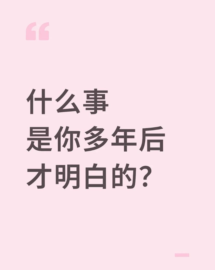 什么事是你多年后才明白的说来好笑,那些年轻时听不进的道理,什么“健康最重要”“别太在意别人看法”,非得自己撞过南墙、吃过亏才真的懂。现在明白了,平凡不是失败,能把日子过踏实就是本事;关系不必强求永远,珍惜当下真诚的人就好;时间更不等人,想陪家人、做喜欢的事,别总说“等到以后”。这些朴素的实话,现在倒成了心里最稳的秤砣。人生这场课,果然都是迟到才学会。