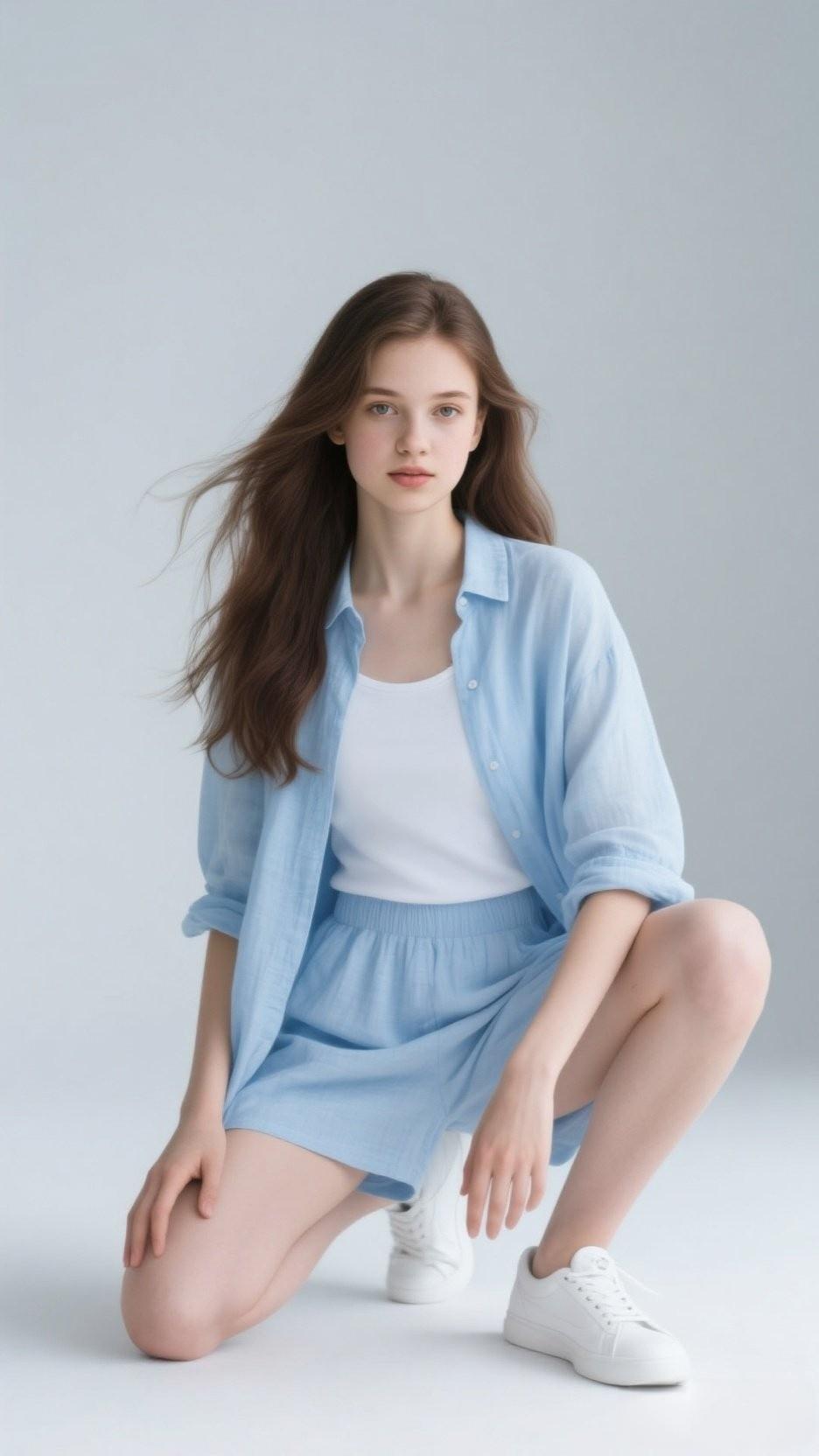 蓝白相间的清新穿搭谁能不爱?少女感直接拉满! 就像那身浅蓝色针织衫配白色半身长裙,针织衫是冰丝面料,亲肤透气,夏天防晒还不闷热。白色长裙纯净百搭,与浅蓝色相互映衬,清爽又养眼。不管是去郊外野餐,还是在草地拍照,都能轻松出片。 还有奶蓝色开衫搭白色连衣裙,背个格纹小包,再戴上毛绒耳帽,往树下一站,春日活力与甜美扑面而来。蓝白配色温柔显白,日常出街这么穿,元气值直接爆棚,甜妹必备! 时尚穿搭