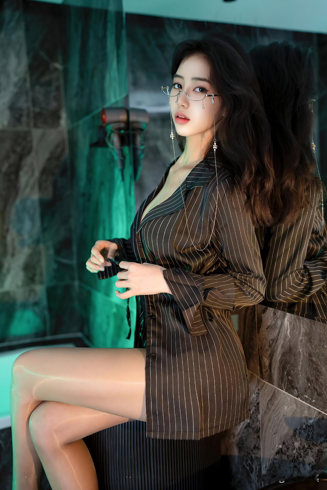 轻倚间腿线舒展成韵,指尖微垂携着漫不经心的媚,氛围感悄然漫溢。