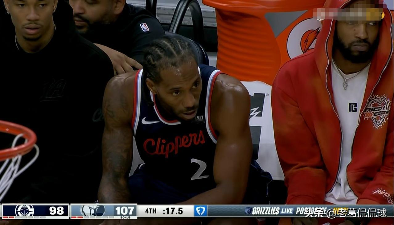 快船超级球星伦纳德真是心灰意冷了!在今天快船客场挑战灰熊的比赛中,当时距离全场比赛结束还剩最后的17.5秒,快船以98:107落后于对手,快船没有任何赢球的希望了。当转播镜头给到快船的替补席时,只见伦纳德异常失落的坐在场下,整个人看起来非常沮丧。面对一场又一场的失利,伦纳德早已经是心灰意冷了。