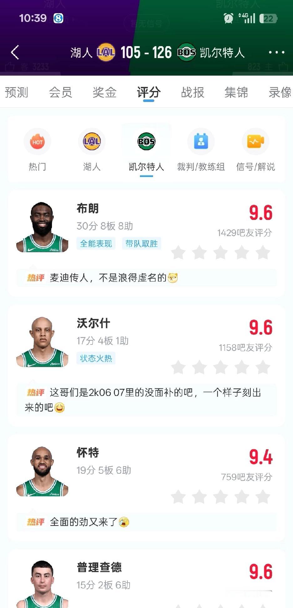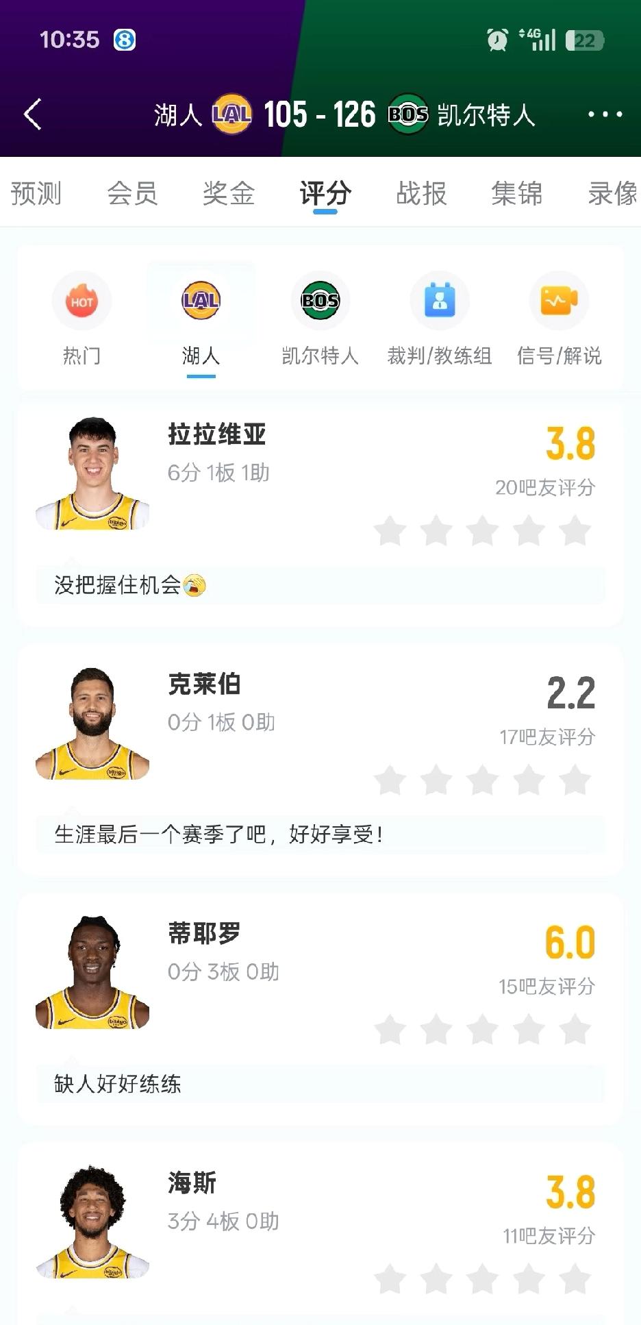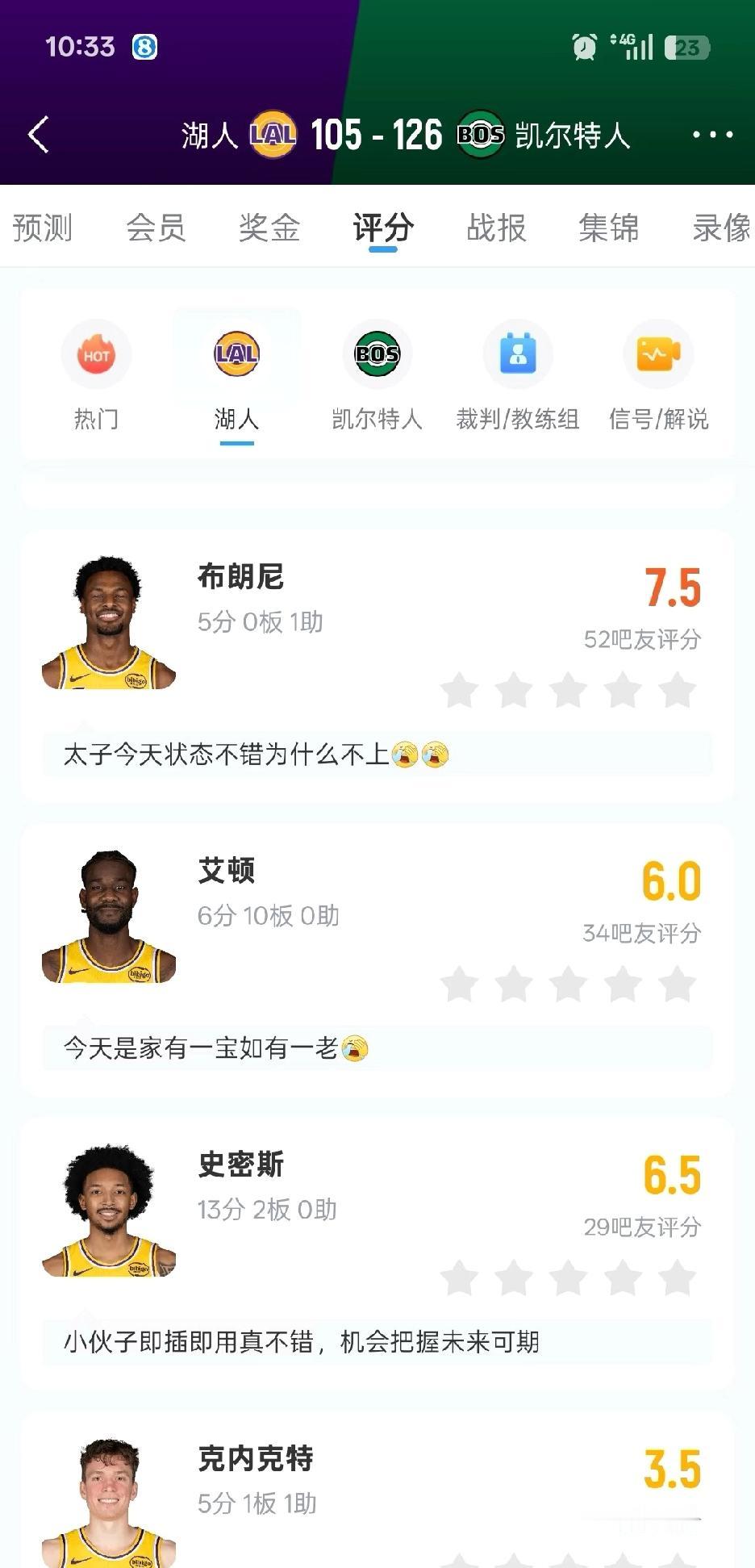 湖人惨败凯尔特人,赛后评分。 季后赛不可能这么给罚球,东契奇还要分走一部分,如果不给就是大量的失误,心气也受影响,所以湖人输的时候就是溃败。当初哈登一到季后赛就拉,不就是这个原因么。