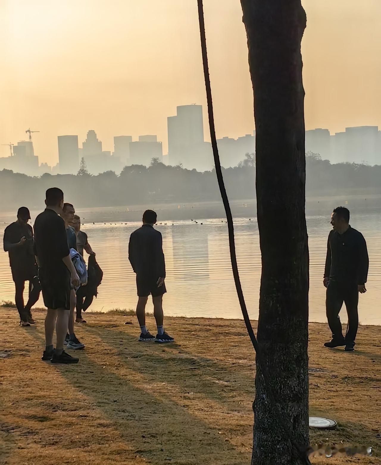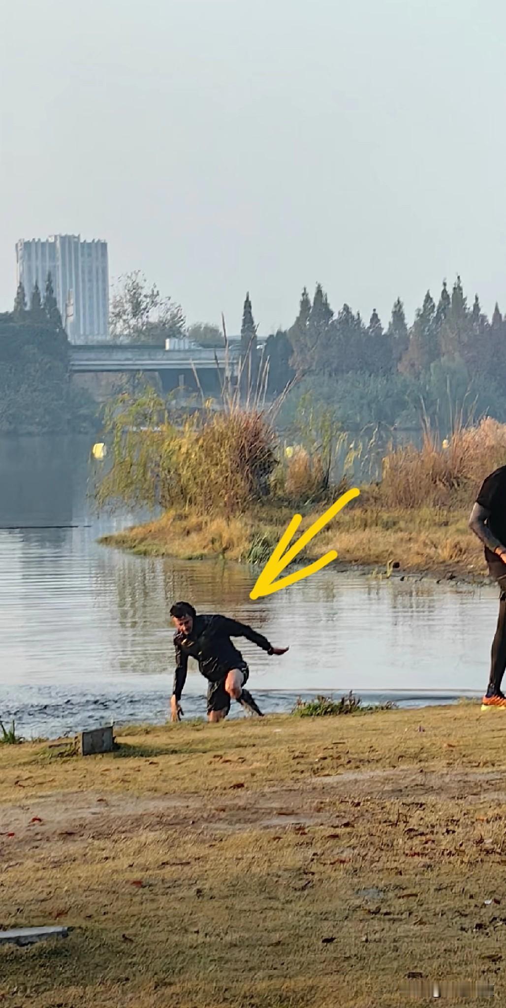 马克龙在成都晨跑。 他的保镖应该是玩嗨了,还不小心掉进河里。 他们应该从来没有在工作中如此放松过。