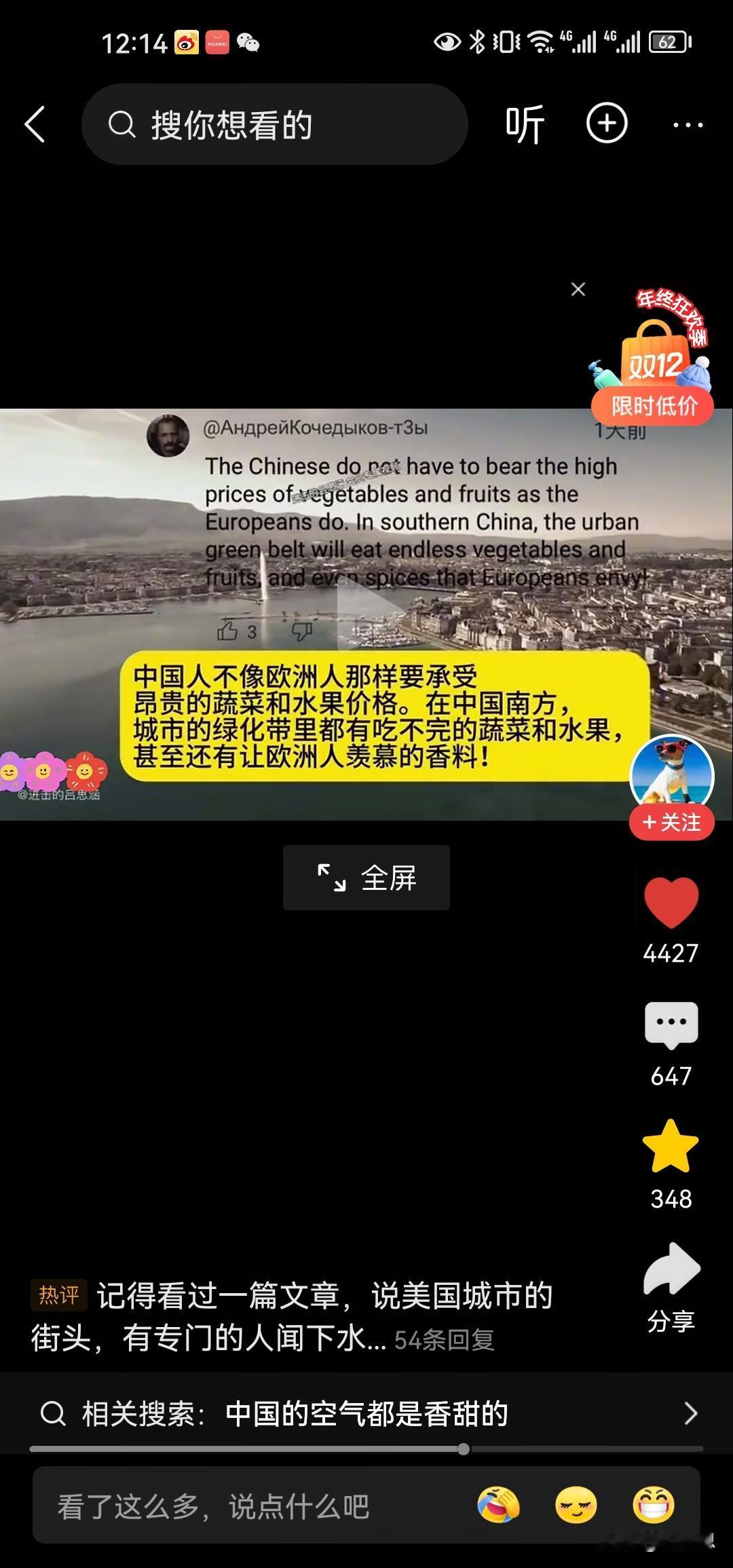 剧情反转啦,美国人一到中国下飞机就说,中国的空气是香甜的,街道干净,反观美国空气都带着屎味,这让他们很不习惯。有在中国生活久的外国人,一回到他们国家生活不习惯,他们受不了当地的尿骚味的空气,现在是攻守易形了。公知怎么吹他们主子都吹不起来了,曾几何时大殖子常常挂在嘴边的一句话“可以怀疑有钱人的动机,从不怀疑有钱人的智商”!我倒是怀疑大殖子的智商了!我对我现在的生活,对国家发展很满意啊,我是一个80后,从农村出来的,小时候一年到头吃不了几顿肉,现在每天怎么吃都可以,水果也不愁是吧?我觉得日子是过得越来越好。虽然网上说很多人负债什么,但负债也是自己的境遇,关键看自己怎么选择,知足常乐,是人生快乐之本。我们要比自己以前有没过得好,不要和别人比过得怎么样。祝愿我们国家越来越昌盛,国泰民安,当然了我们内部要保持团结是吧?继续打击一些不正之风,铲除腐败的土壤,那我们会过得更好。