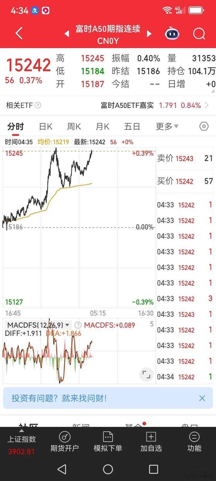 昨夜美股三大指数又是全线上涨,用不了多久,又会再次刷出历史新高,这个是不用怀疑的。 目前为止富时A50还在上涨,金龙中国指数也是上涨的,形势一片大好。那么下周大盘估计会延续反弹。至少下周一会上涨。 本周大盘调整了三天,回调的比较充分,然后大盘再涨个二三天是比较正常的,所以下周一不必担忧。 当然了这只是个人想法,不构成投资建议。投资有风险,入市需谨慎。