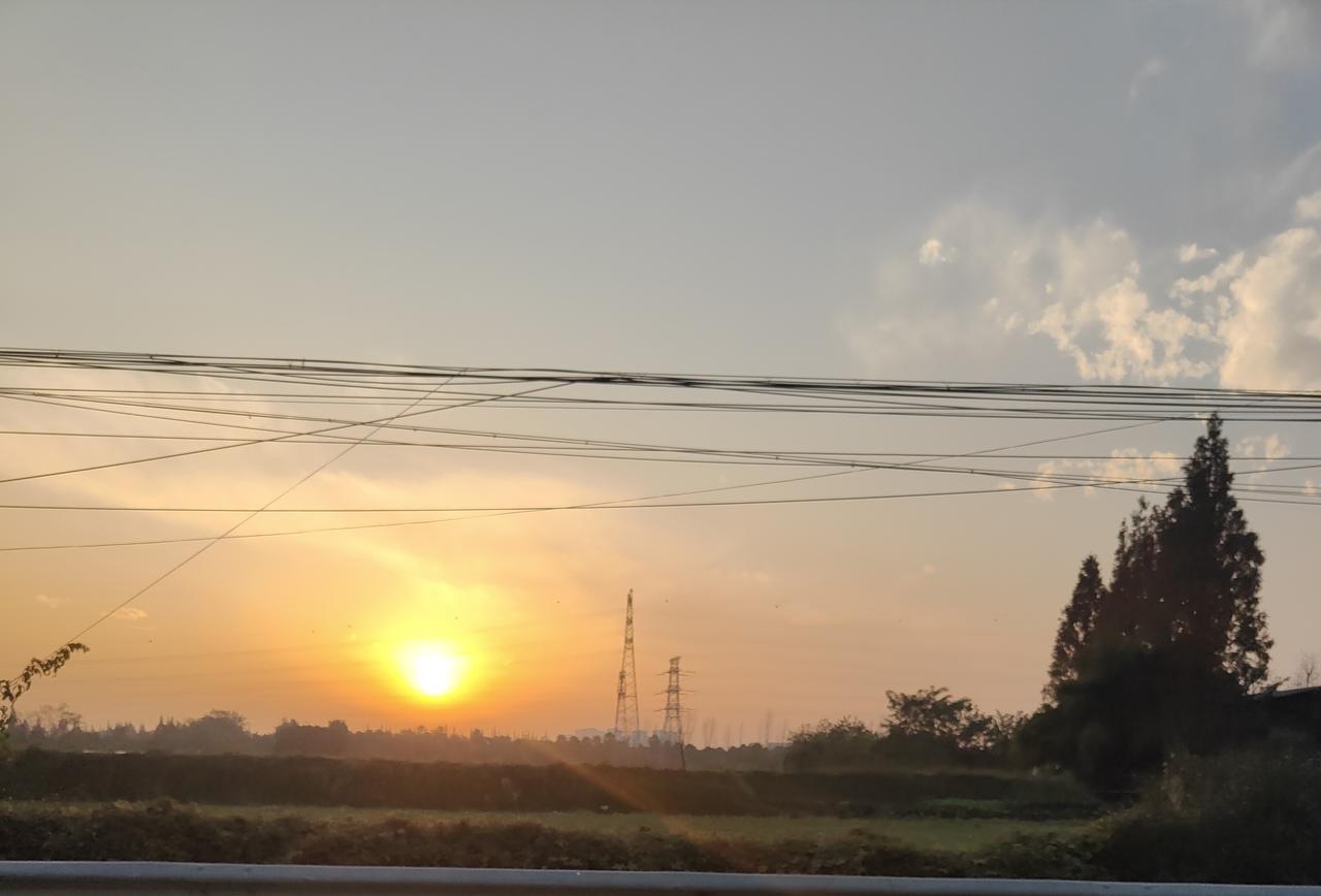 清晨的朝阳,撞见楼缝里漏出来的朝阳——像颗裹了蜜的糖,把玻璃都浸成暖橘色。风裹着