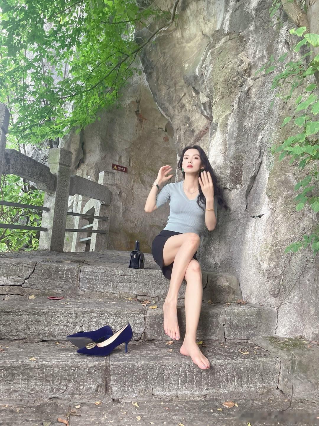 每当拍照的时候,就把高跟鞋穿上~