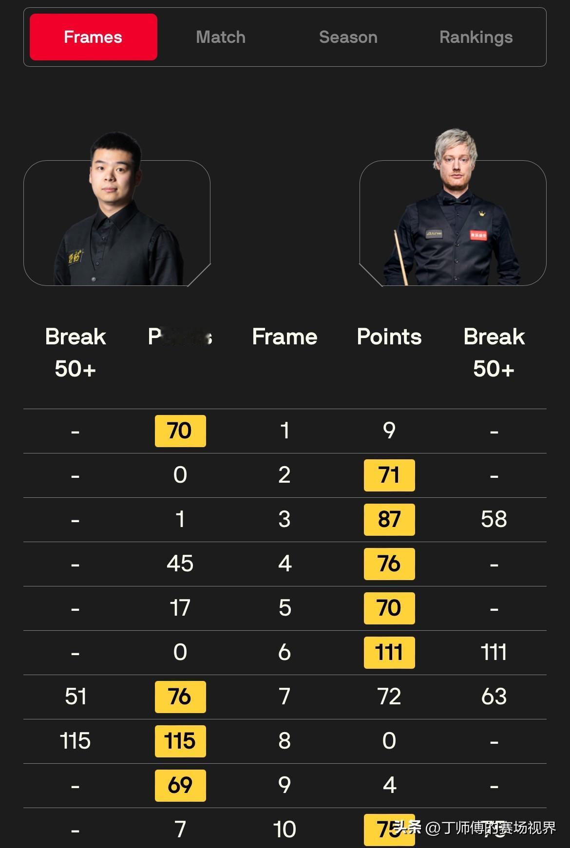 罗伯逊击败庞俊旭赛后接受采访时表示对中国小将的赞叹:“当我5-1领先的时候基本上无懈可击,但比赛就是这样,什么事情都会发生,他(庞俊旭)无路可退之下完成了不可思议的逆转,随后又打出一杆破百,虽然我最后一杆制胜了,但他给了我很大的压力,好在我都能顶住。”“回想起2020年的决赛,当时全世界都在经历艰难的时期,能够打比赛就已经谢天谢地,由于没有了观众,现场气氛变得一片诡异,我们都很紧张,只安排了人工的按钮来鼓掌。当我打进锁定胜局的粉球时,贾德跟我说干得好,现在想起来真是疯狂。我们两个都是世界上技术最好的球手,我想至今为止我们都在比赛中向大家证实了这点。” 罗伯逊在英锦赛8强面对庞俊旭取得5-1的巨大领先且完成超分,但随后被中国小将通过一杆教科书一样的斯诺克获得自由球并完成逆转,一度追至4-5,最终凭借在第十局抓住机会涉险过关,半决赛将和特鲁姆普上演“左手大战”。