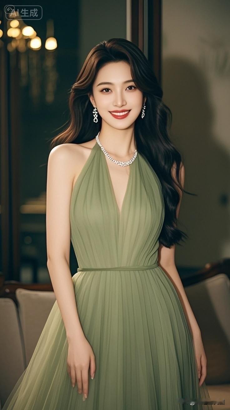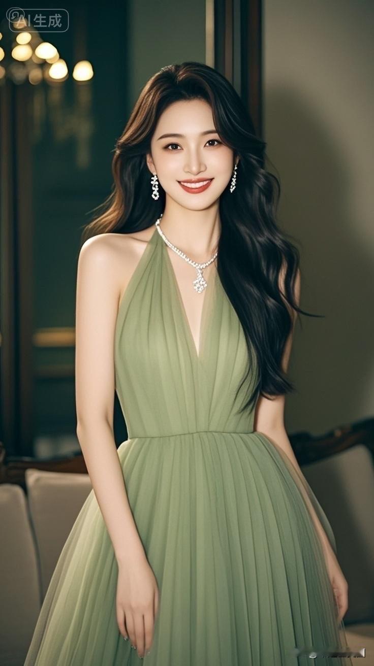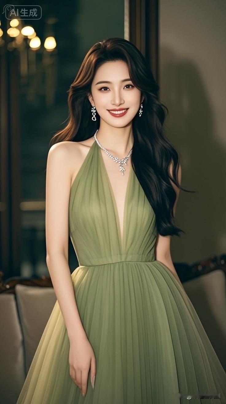 优雅绿裙,闪耀珠宝,气质女神!💎✨