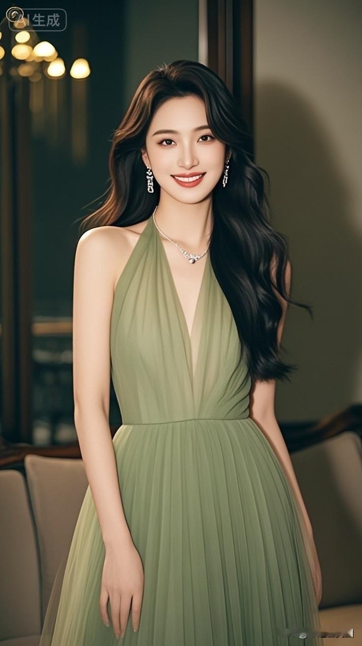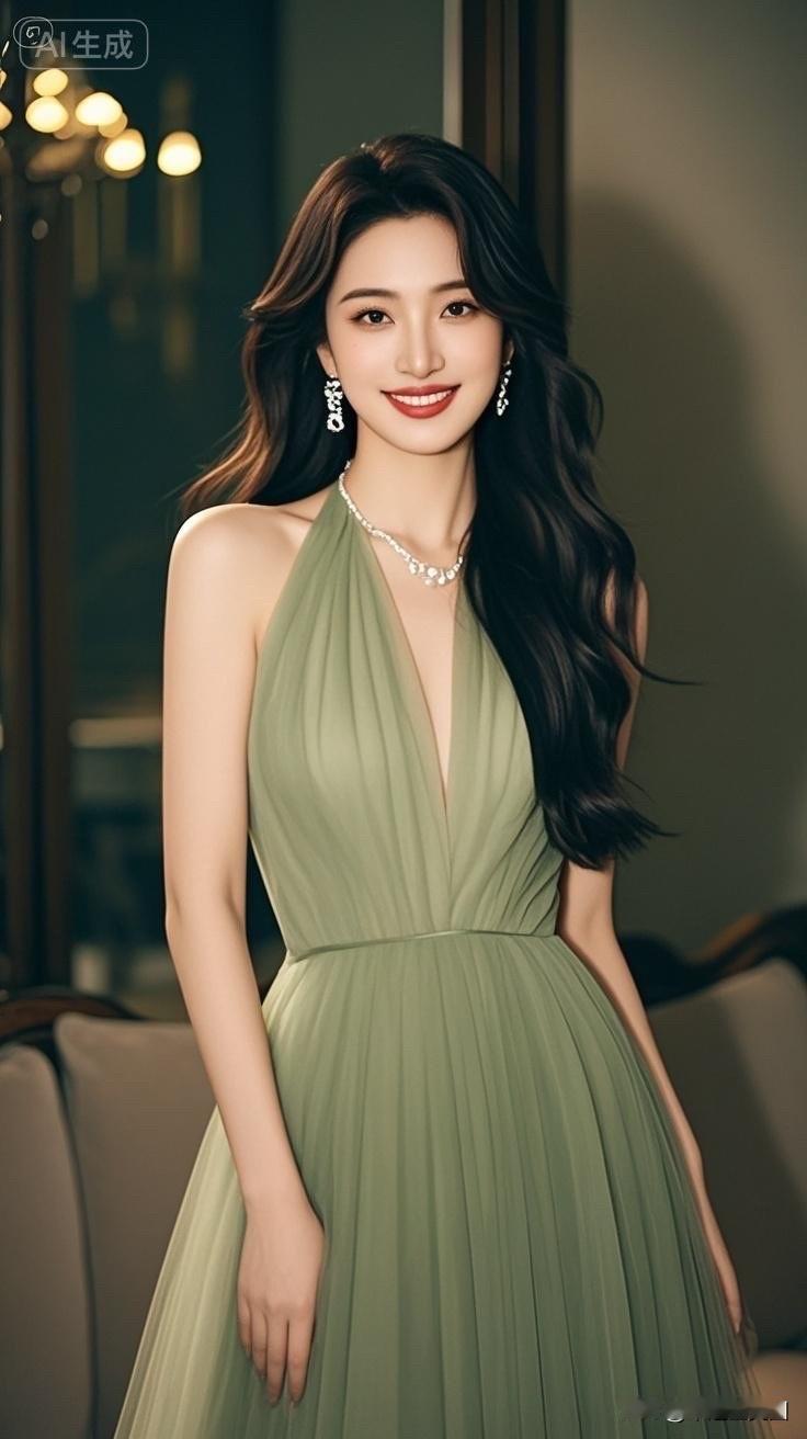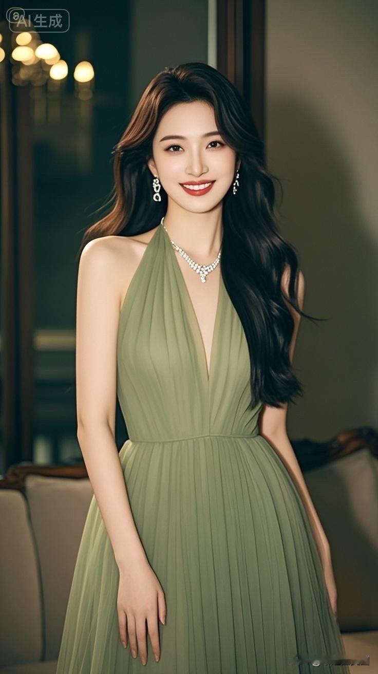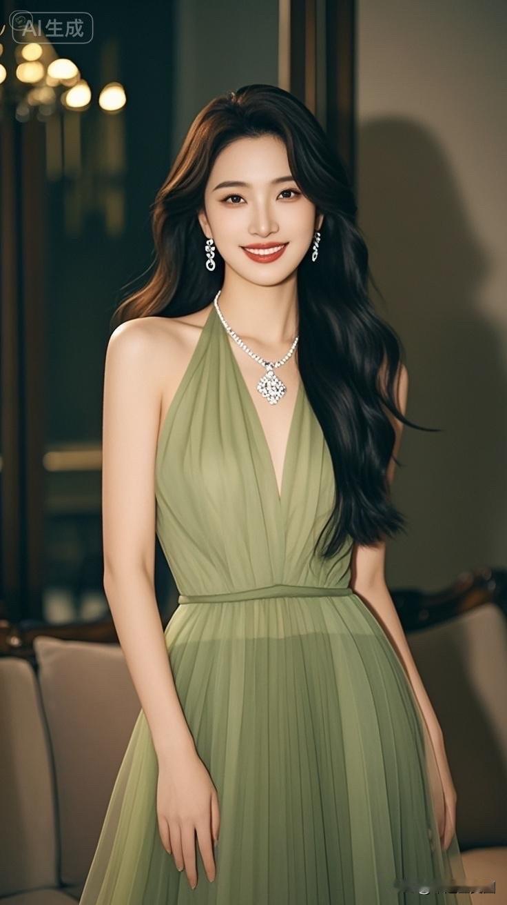 优雅绿裙,闪耀珠宝,气质女神!💎✨