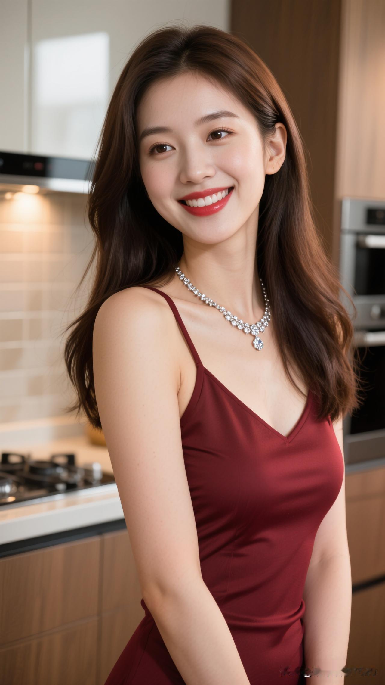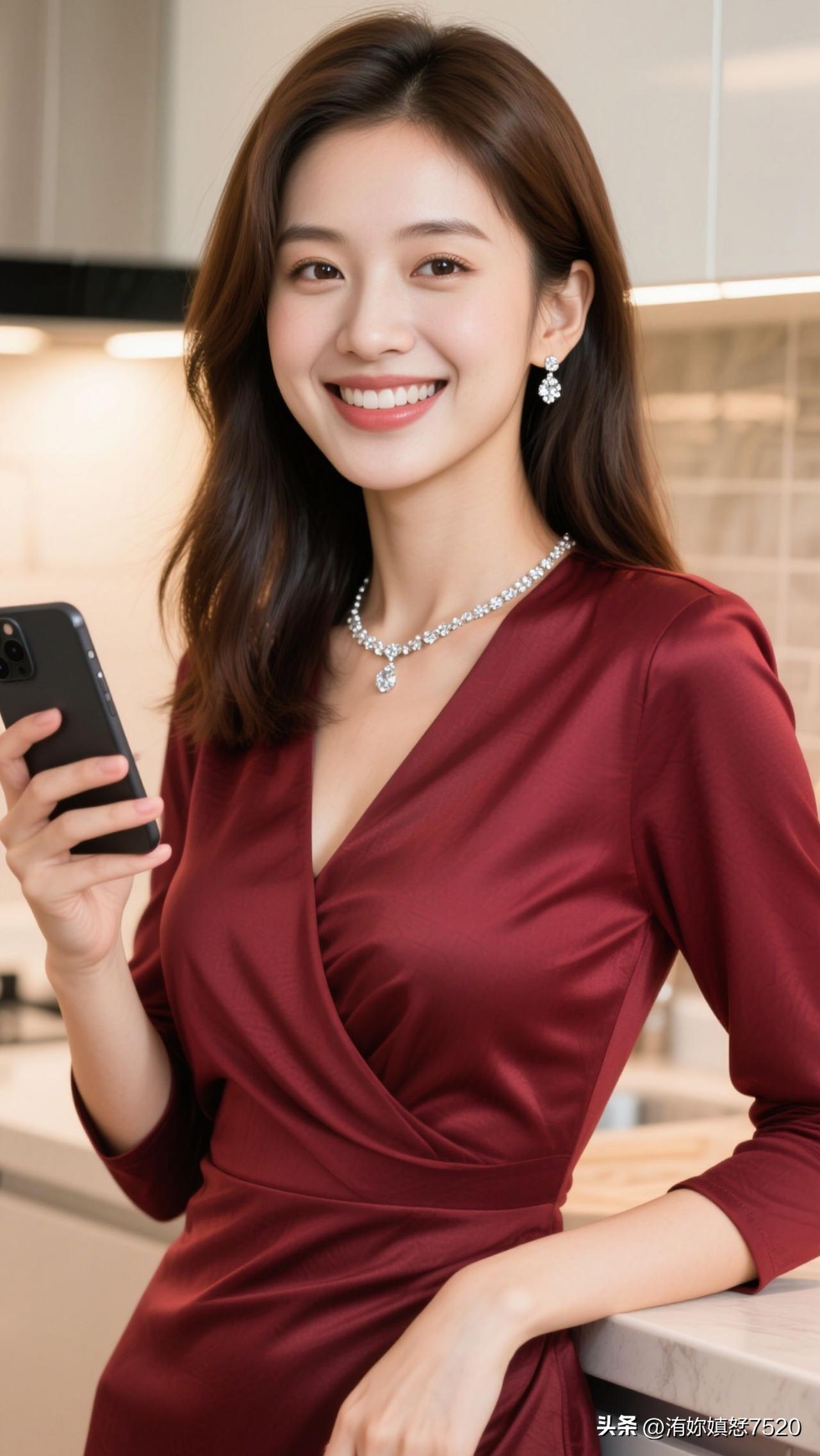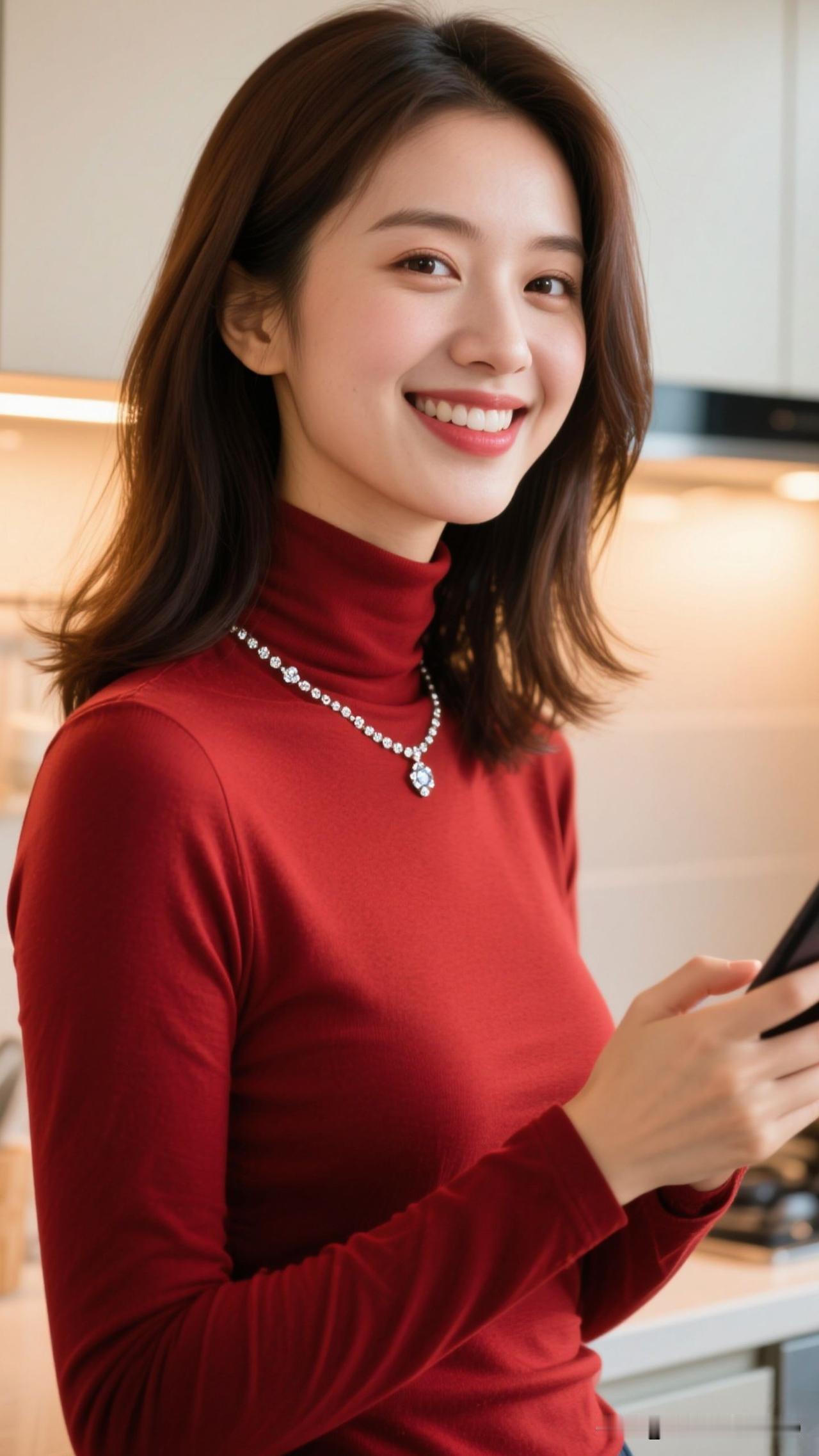 ✨ 红衫像盛着落日的杯,钻石项链坠着星子的光,厨房里的每一缕暖都浸着鲜活的甜。红衣金饰佳人 复古红衣穿搭 酒红穿搭照 红衣女士 复古红礼服 红衣衫 复古红衣 红衣玫瑰 温柔红色穿搭