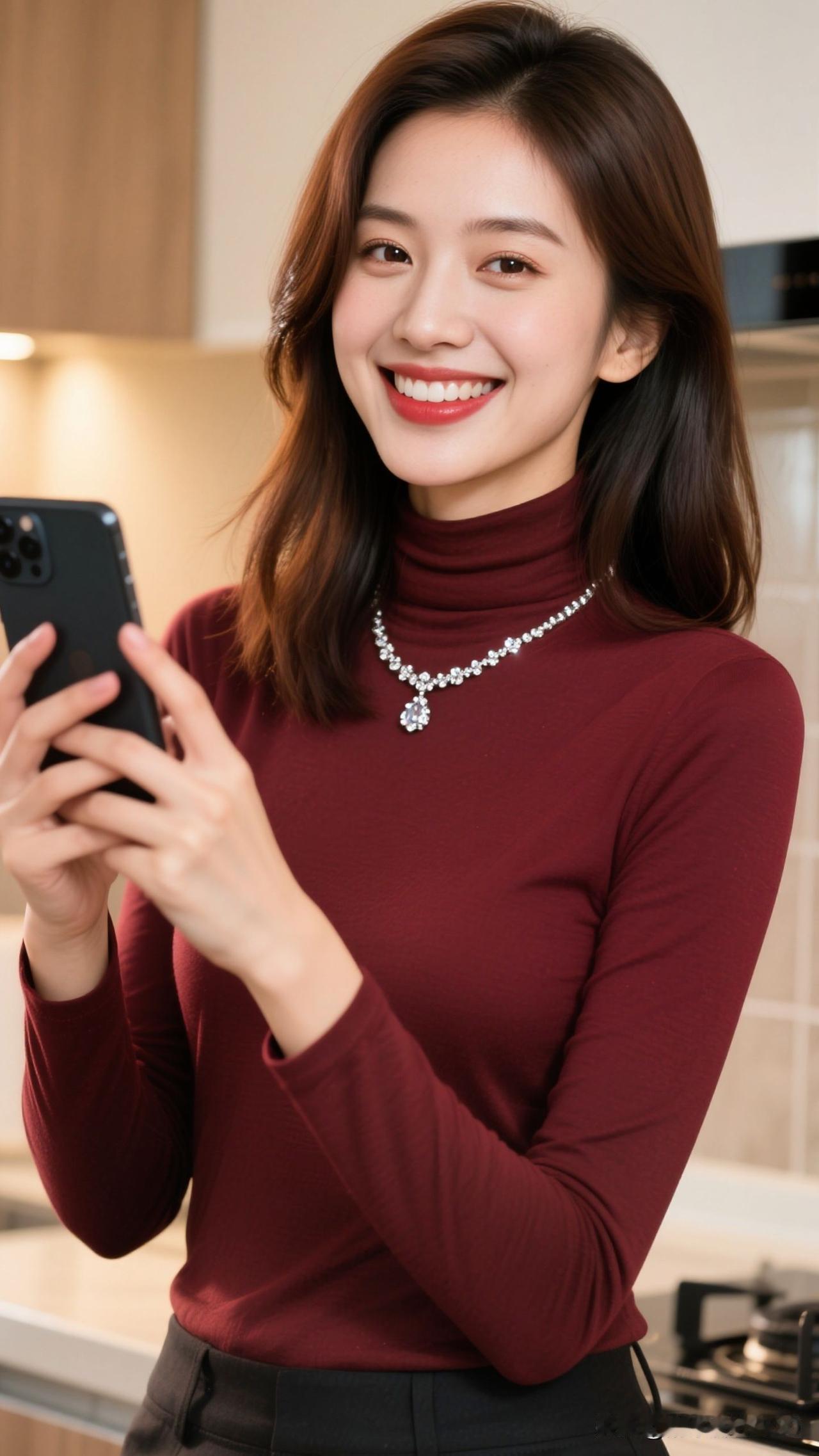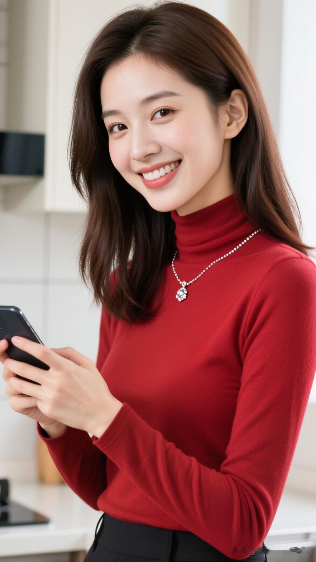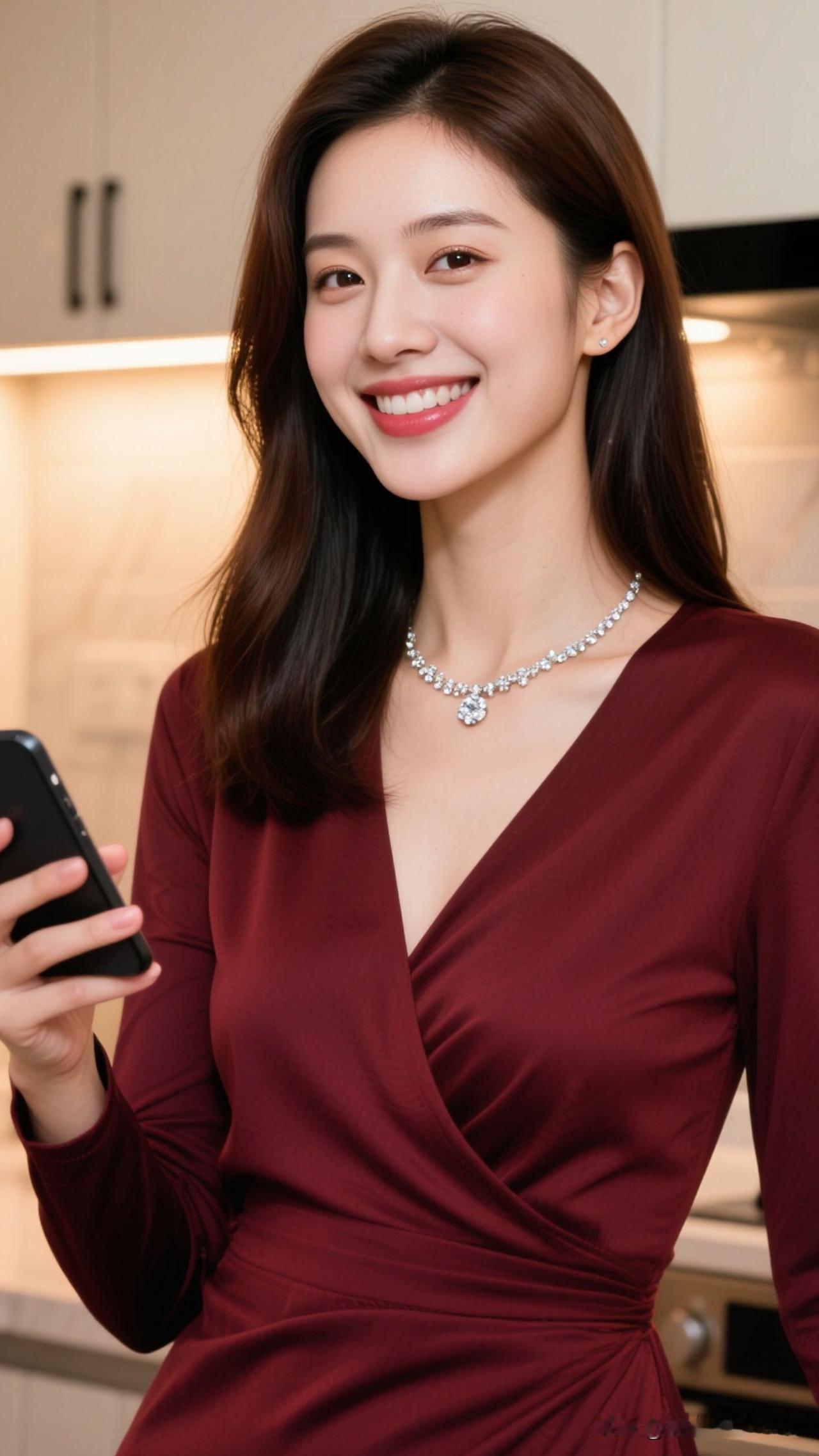 ✨ 红衫像盛着落日的杯,钻石项链坠着星子的光,厨房里的每一缕暖都浸着鲜活的甜。红衣金饰佳人 复古红衣穿搭 酒红穿搭照 红衣女士 复古红礼服 红衣衫 复古红衣 红衣玫瑰 温柔红色穿搭