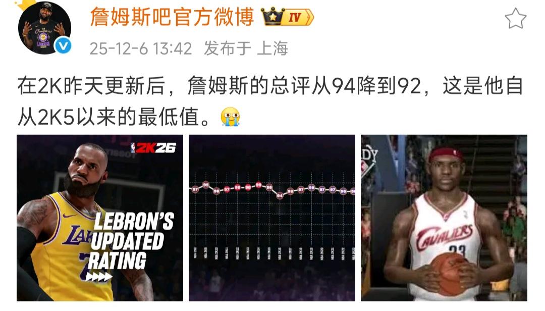 游戏已经开始降詹姆斯的能力值! 暂时从94降到92,很快会低于90。 如果低于80,感觉詹姆斯快退役了。 没办法老了呀,41岁的年龄太大![可怜]