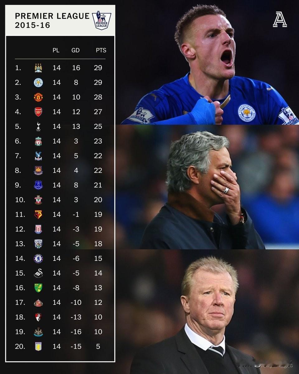 英超联赛已进入第15轮,与十年前(2015/16赛季同期)相比,积分榜和球队格局已发生显著变化: 附图一是十年前(2015/16赛季第15轮): 1️⃣ 曼城和莱斯特城领跑积分榜,最后上演“蓝狐奇迹” 2️⃣ 曼联、阿森纳分列三四位 3️⃣ 而切尔西作为卫冕冠军仅排名第14位 4️⃣ 阿斯顿维拉深陷降级区,纽卡斯尔位列第18 如今已是另一番天地!