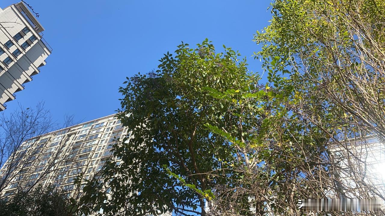 冬日生活打卡季楼阁倚青天,树影拂窗前。