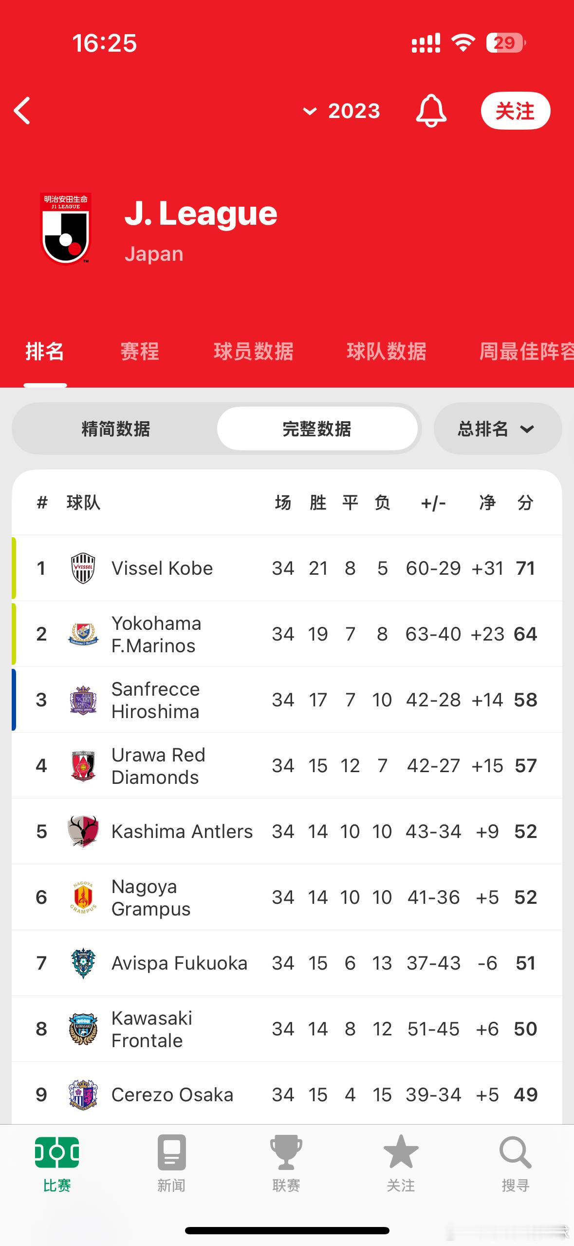 对比2022、2023和2025赛季J1争冠的剧本,让我们看看“J1冠军诞生记”:1️⃣2022赛季最后一轮:神户1-3横浜FMFC东京2-3川崎(川崎被出示1张红牌,裁判也加入阻击战吗?)最终,横浜FM以两分优势夺冠,川崎次之。看起来神户像保送横浜FM夺冠一样,只进了一球。(本赛季,横浜FM总共得到3张红牌,与他们对阵的对手得到4张红牌,所有红牌不同时出现在一场比赛中)2️⃣2023赛季,神户以7分优势夺冠,横浜FM次之。(本赛季,横浜FM总共得到4张红牌,与他们对阵的对手也得到4张红牌,所有红牌不同时出现在一场比赛中)3️⃣2024赛季,横浜FM逐渐滑落至中游。(本赛季,横浜FM总共得到2张红牌,与他们对阵的对手得到5张红牌,并且在一场比赛中同时出现各得1红的情况,即便有裁判助力,也没能控制住该球队下滑的势头)2025赛季最后一轮,从保级区突围的横浜FM在最后一轮1-2不敌鹿岛,他们在下半场补时第一分钟打进一球,最终,鬼木达带领鹿岛夺冠,弥补了22赛季的遗憾,又成全了一段佳话。