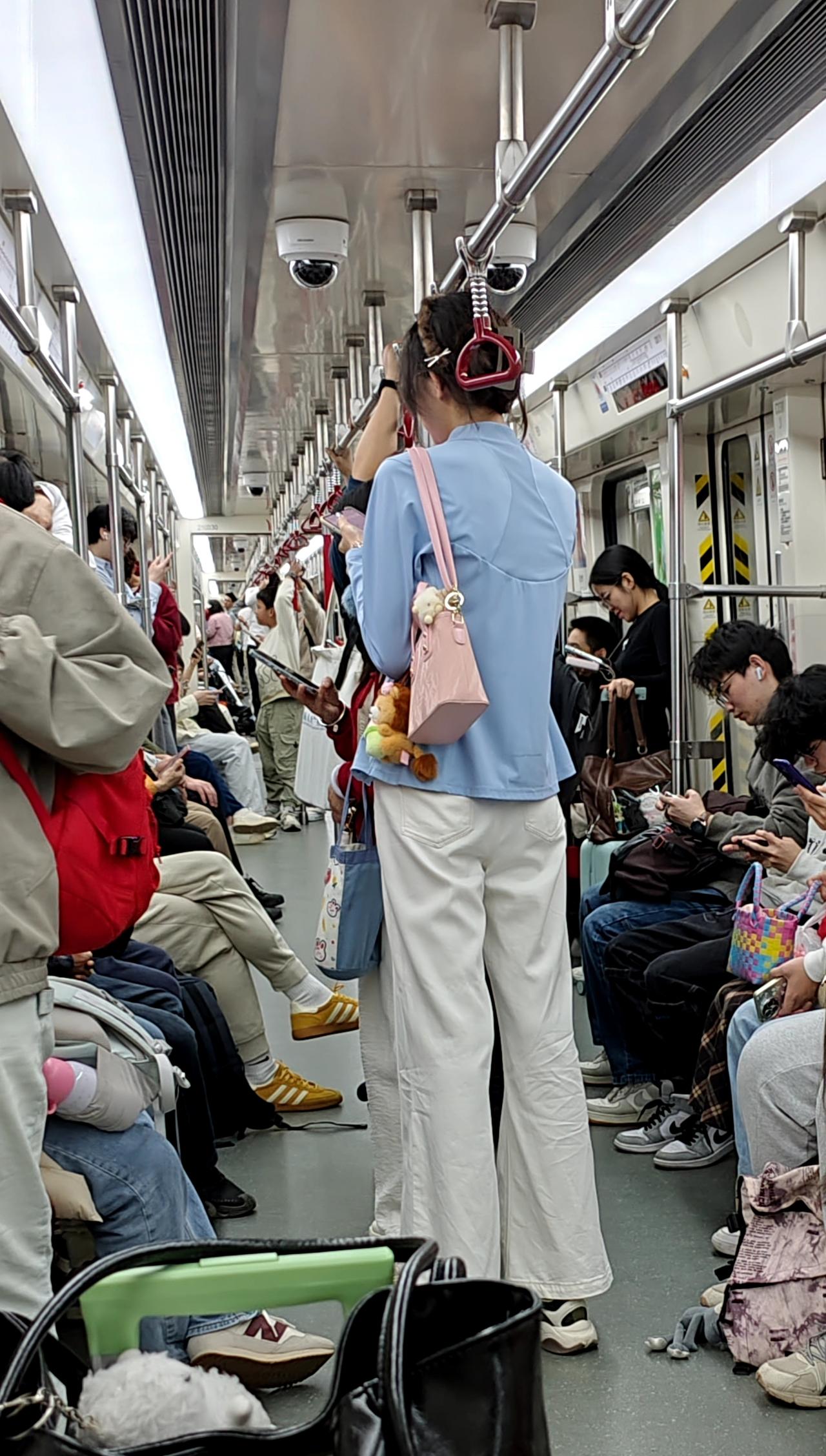 今天下午坐地铁的时候,在镇龙往天河公园方向看到这个比较高的靚女,在车厢里面,她的头都碰到那条杆了,有谁知道广州地铁里面的那条杆有多高啊?很多男的都没有她的高度啊!看她没有拖箱,没有拿大一点的包,挂着这么小的包,就像是去逛街的,会不会是去天河公园逛呢?好像天河公园有一个相亲角,假如是去相亲的,广州本地的男孩会追她九条街吗?