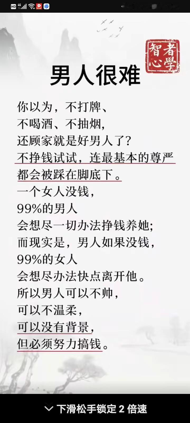 很现实的一句话 “ 南墙让你清楚现实,经历让你看透..人心,教训让人看清人性!