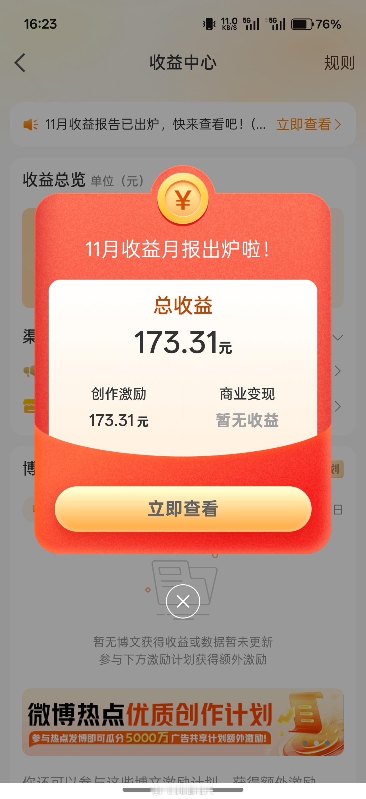 微博又给我发工资了,上个月173,这个就几杯奶茶的钱。