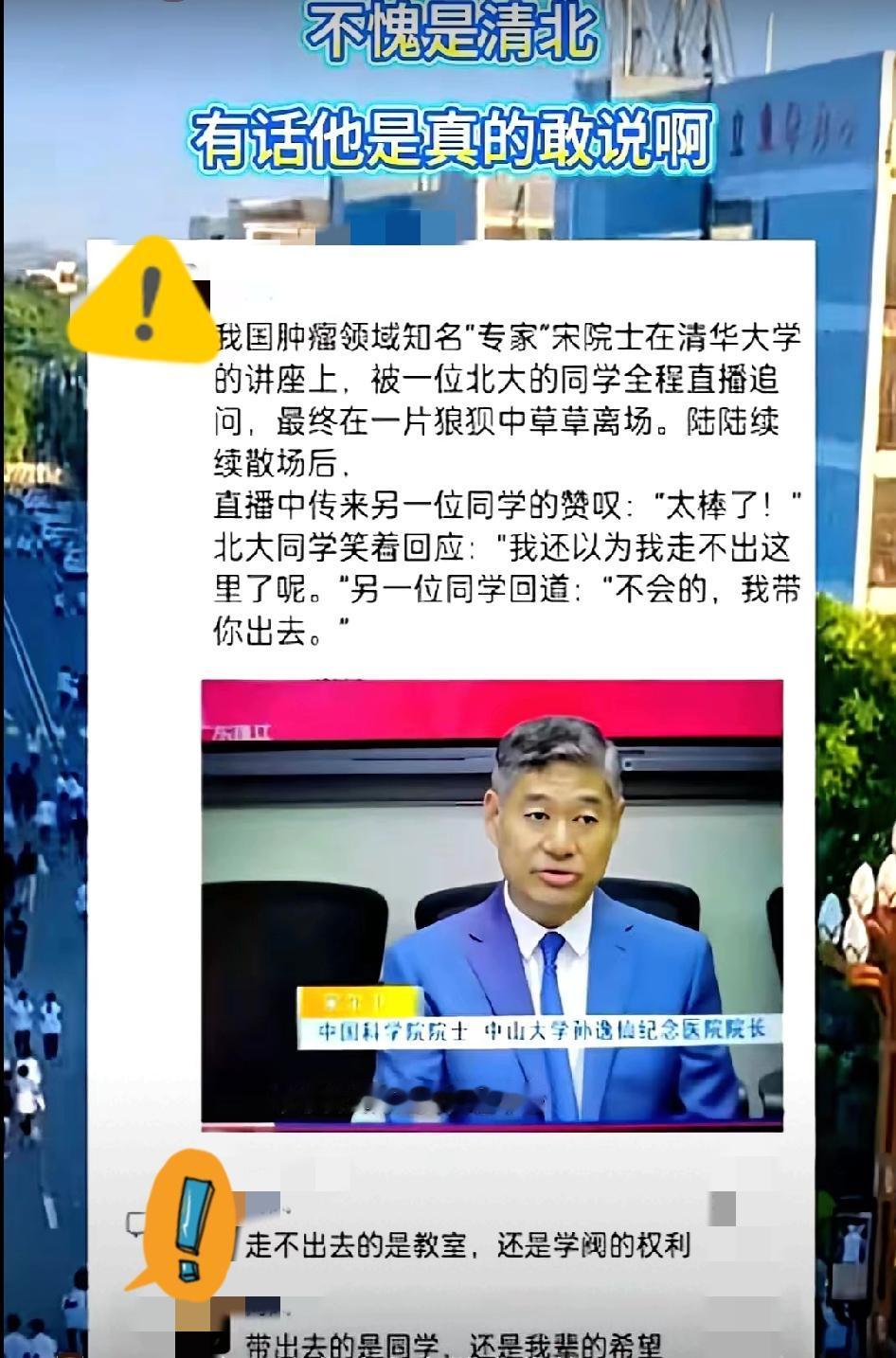 清华这场面也太炸了! 北大本科生开着直播硬刚院士,追问论文图片重复问题,最后逼得老先生提前离席,这波操作看得人直呼过瘾! 现在的学术圈早就变了味,峰会变成吹捧大会,提问全是提前安排的“软问题”,人人捧着“人情世故”的剧本,哪还有半点求真的样子。 有人骂这学生不懂规矩,可学术的本质不就是质疑与求证吗? 真理面前从无长幼尊卑,所谓“规矩”不该成为掩盖问题的遮羞布。 这学生的一嗓子,像惊雷劈开了学术圈的虚伪,比那些敷衍的吹捧有价值多了。 真正的学术自信,是敢直面质疑而非堵人之口。 你觉得学术圈该多些这样的“硬刚”吗?来评论区聊聊!