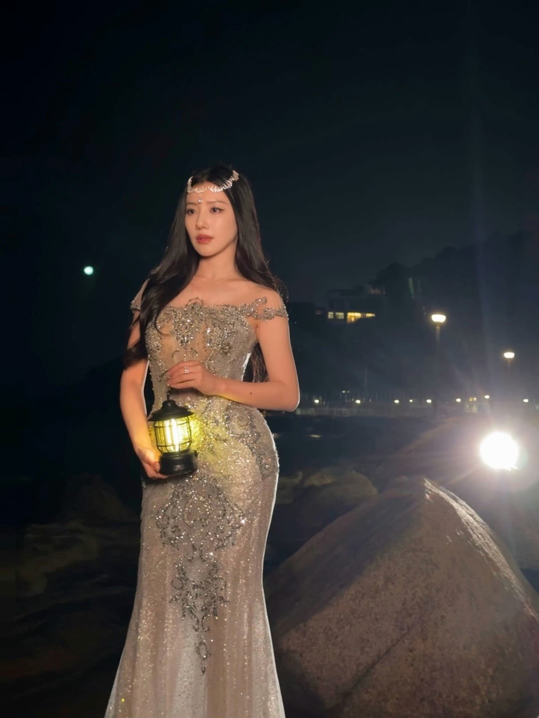 王鹤润人鱼公主 王鹤润完美诠释人鱼登岸!玲珑曲线在裙装衬托下尽显无遗,灯光下仿佛身披整片星河,美得如梦似幻