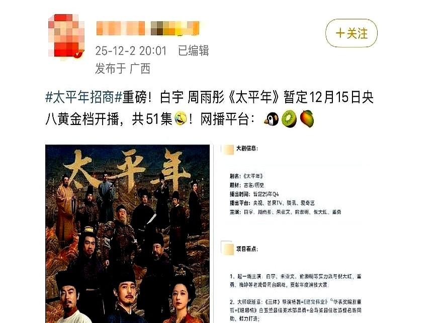 这剧的设定直接戳我心窝子! 现在网上吵翻了,有人说“终于不是工业糖精堆的恋爱脑!把人往历史碾盘上压,看他怎么疼怎么熬,这才叫剧”;也有人说“白宇演拧巴王爷?想起他《沉默的真相》里江阳咬着牙扛的劲,这角色肯定能拧到观众心里”;甚至有人说“朱亚文的赵匡胤,光是那股《红高粱》余占鳌的霸气,跟白宇的文人风骨对戏,绝对炸场”! 我真是笑了,那些天天拍“神仙打架”“总裁玛丽苏”的剧,哪懂这种“舍”的狠? 历史书里“纳土归宋”就四个字,可钱弘俶得把自己守了半辈子的桃花源、祖宗传的王位,亲手递出去——不是怕输,是怕百姓遭战火! 他输了王位,却给吴越人赢了“太平年”,这种“不拼输赢拼良心”的格局,比100部工业糖精剧都让人破防! 这剧要是上了,你们会为钱弘俶的选择红眼眶不?