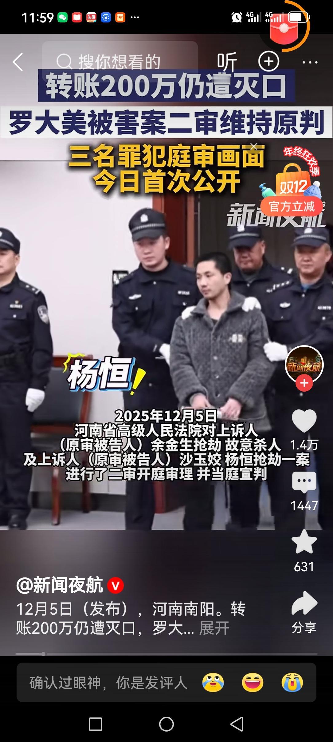没有想到罗大美的爸爸还会开车! 二审结束后,罗大美的爸爸妈妈开车回老家了,罗大美的妹妹也要回去上学了。 二审还是维持了原判,虽然结果有点不尽人意,但是老实善良的他们还是选择相信法律,接受现实。 罗大美也要入土为安了,坏人得到应有的惩罚,持续两年的官司也告一段落了。 三个嫌疑人真容也在网络上曝光了,真没想到他们在里面也吃得油光满面。 余金生满脸横肉,一看就是一个心狠手辣的人。杨恒则是满脸的阴险狡诈,满面的不服气。沙玉娇流露出来真容也不如原来漂亮了,就是一个普通人的长相。 这三个人真是害人害己!