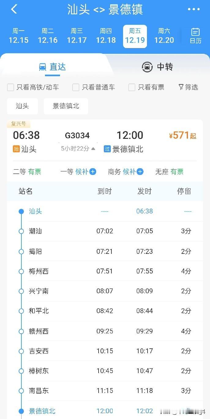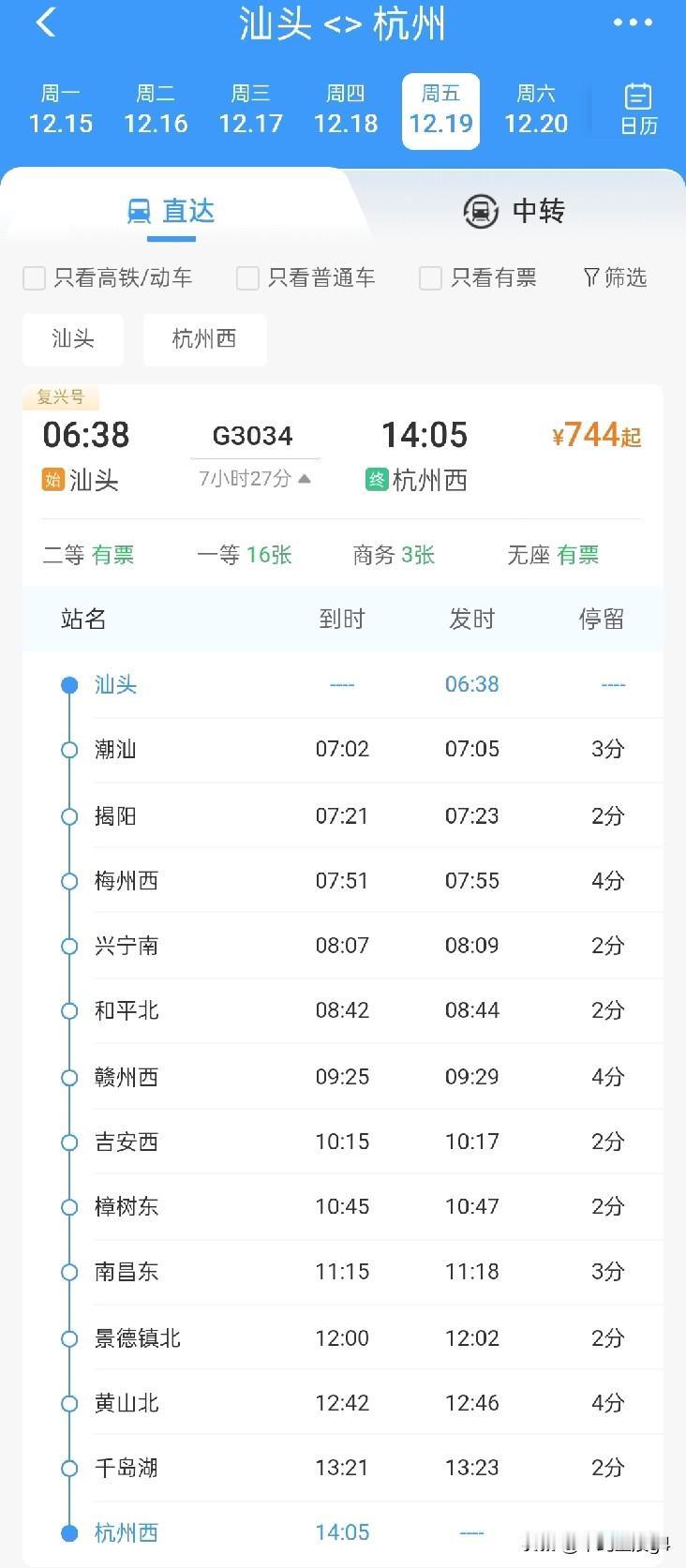 汕头12月起增开了两趟去往浙江方向的车次,一趟走福建,一趟走安徽 2025年12月5日,汕头站部分列车进行调整,新增了两套跨省跨局高铁列车,G3034次列车,D3114次列车,首次解锁汕头市区,可从汕头站直达出行前往江西,安徽、浙江、福建等省份的城市。这两趟列车的终点分别是浙江到杭州和宁波。 G3034次列车,走行线路和有一趟汕头至南昌东站的列车走向相同,途经揭阳、梅州、赣州、吉安等城市,而南昌以北的景德镇,黄山杭州则为此次线路调整,新增的可到达城市。 D3114次列车,除了潮汕站,其余的厦门,泉州,莆田,福州,温州,台州、宁波均为新增可到达的城市,汕头站出发,通达范围大幅提升。 12月底,汕头站还将新开通汕汕海底隧道的高铁列车,和汕头南站直通运营,并且将新增去往阳江、茂名、湛江方向的高铁列车车次。而2026年,潮汕地区的粤东城际铁路网络也将逐步建成,汕头、揭阳、潮州等城市将开通城市群间的轨道交通,就像地铁一样,进行在更多的地方,可以家门口坐列车了。