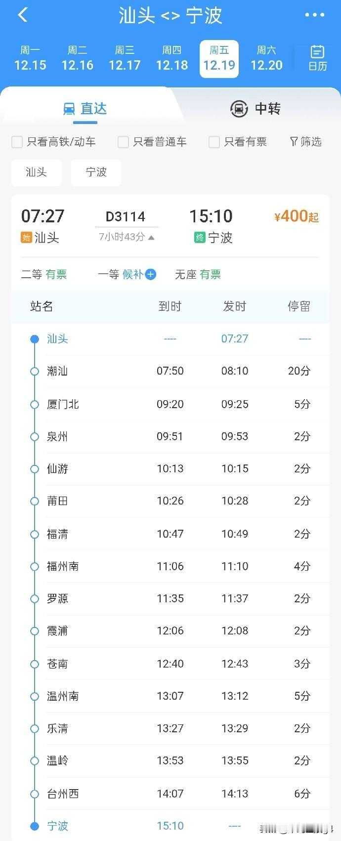 汕头12月起增开了两趟去往浙江方向的车次,一趟走福建,一趟走安徽 2025年1