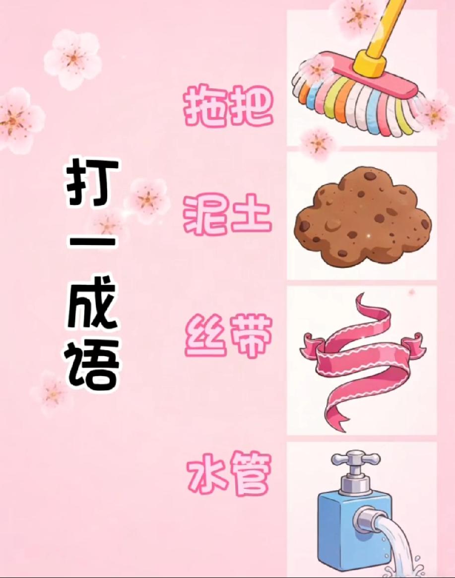 全网都在猜!拖把、泥土、丝带、水管凑一起是啥成语?评论区快救救我!
