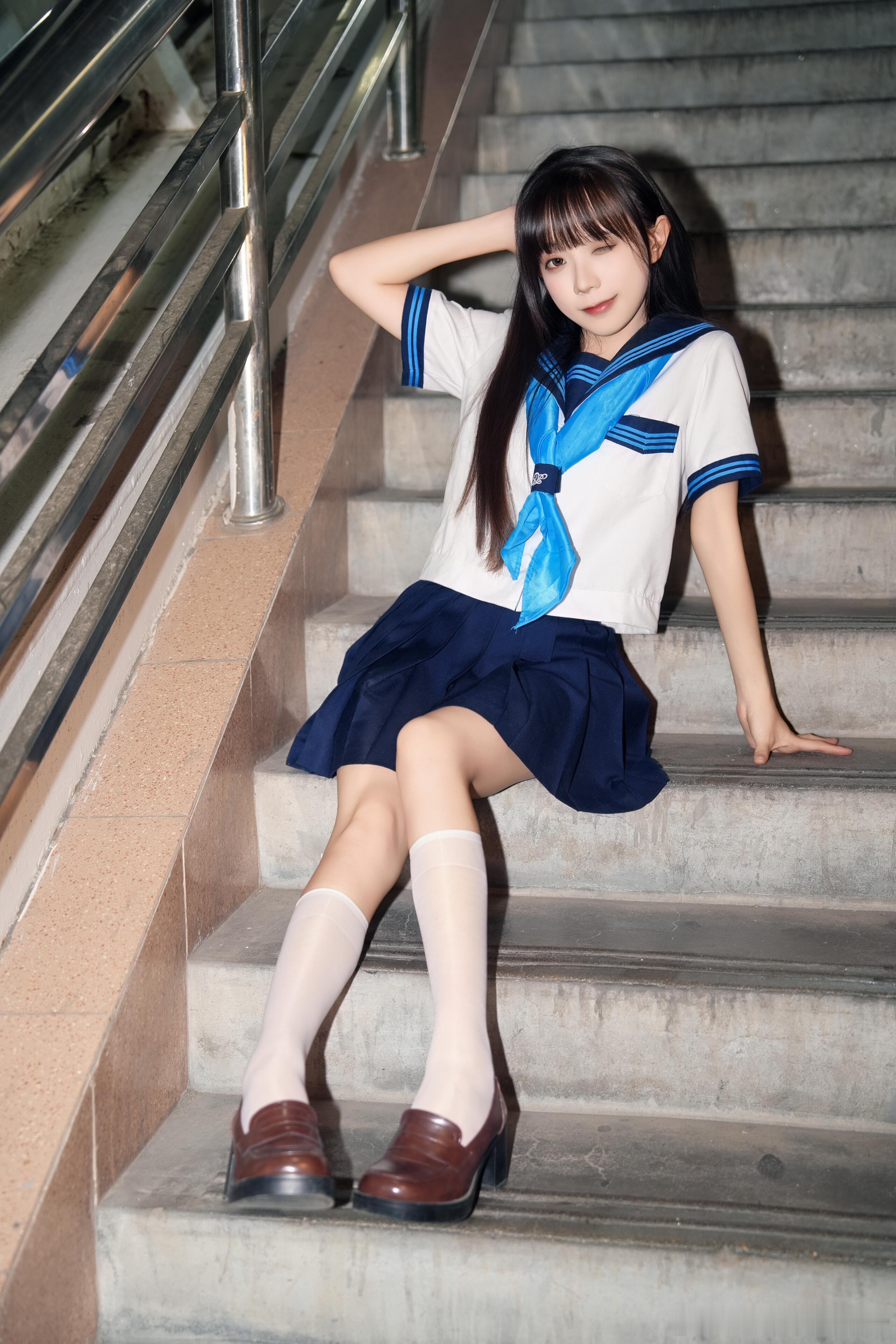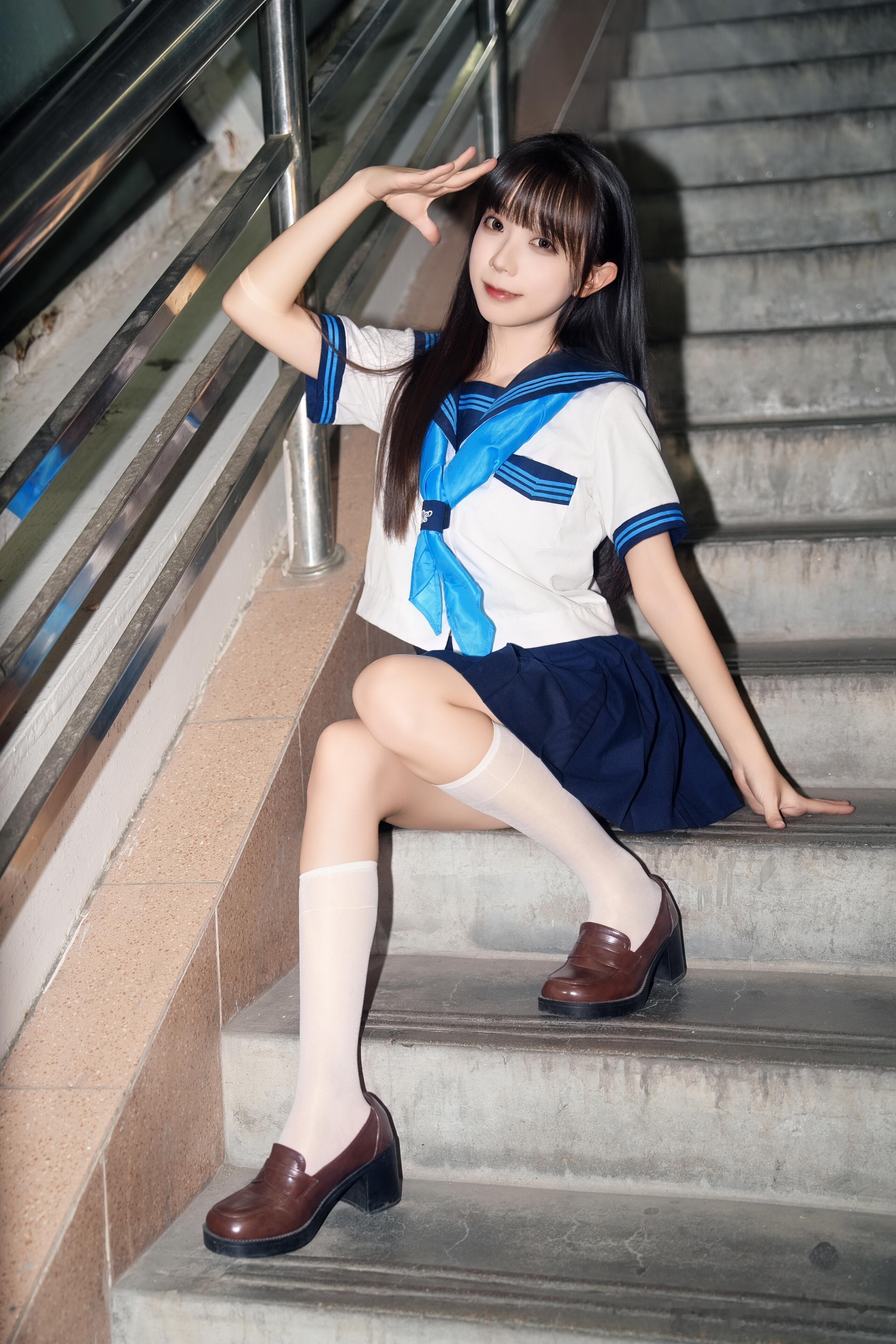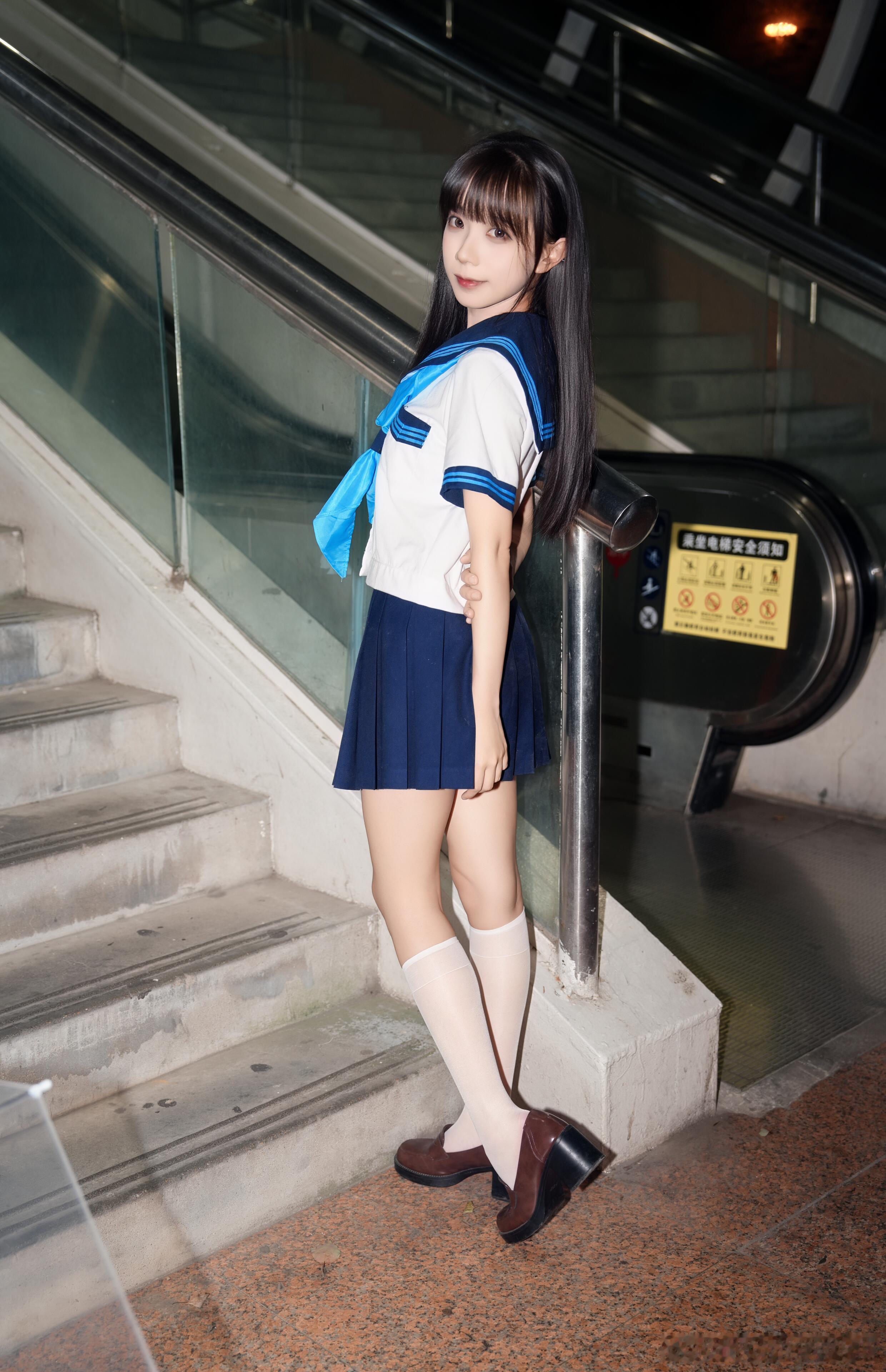 长筒白袜卡在小腿最细处,再踩一双厚底玛丽珍鞋,简直拉满了校园俏皮感~