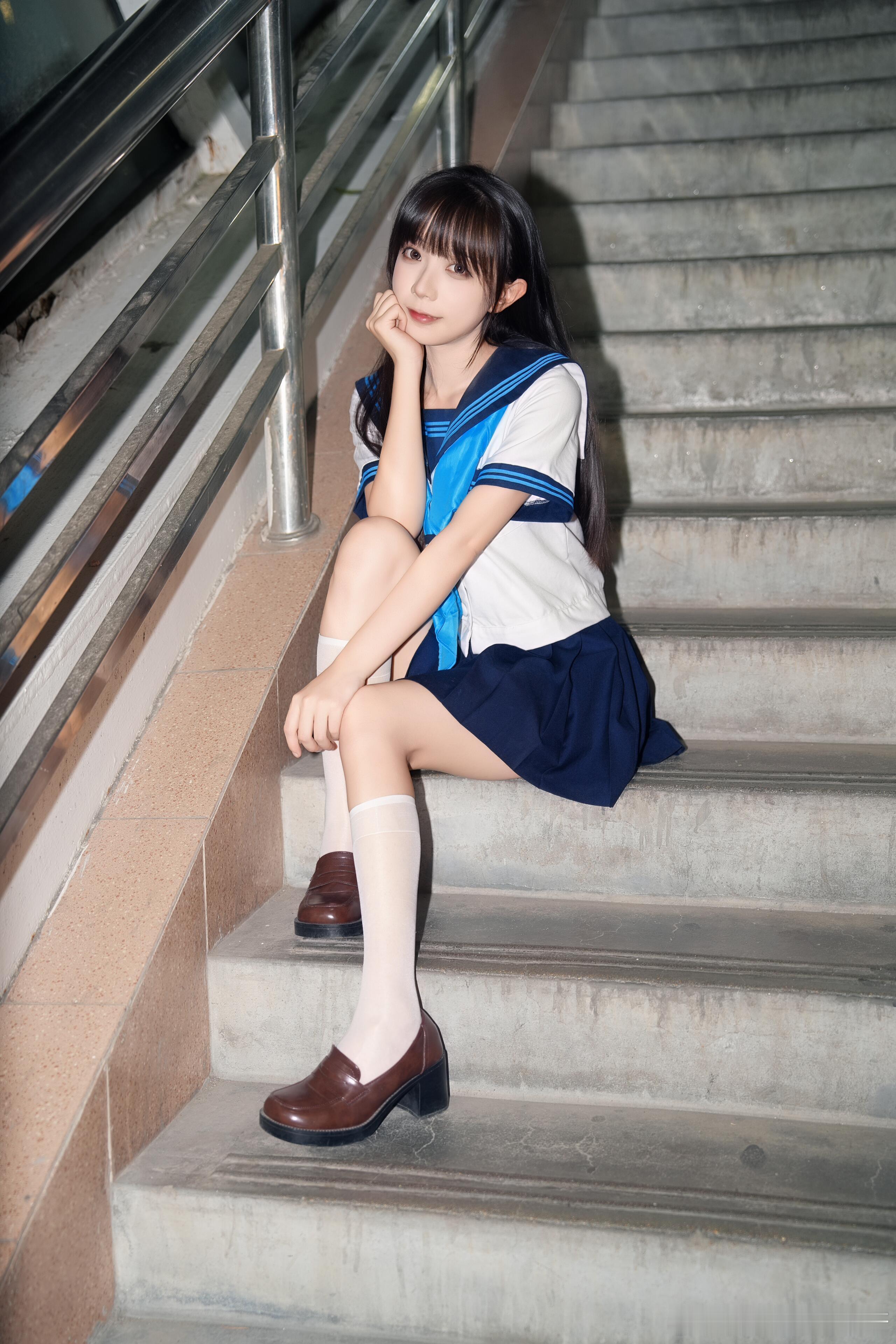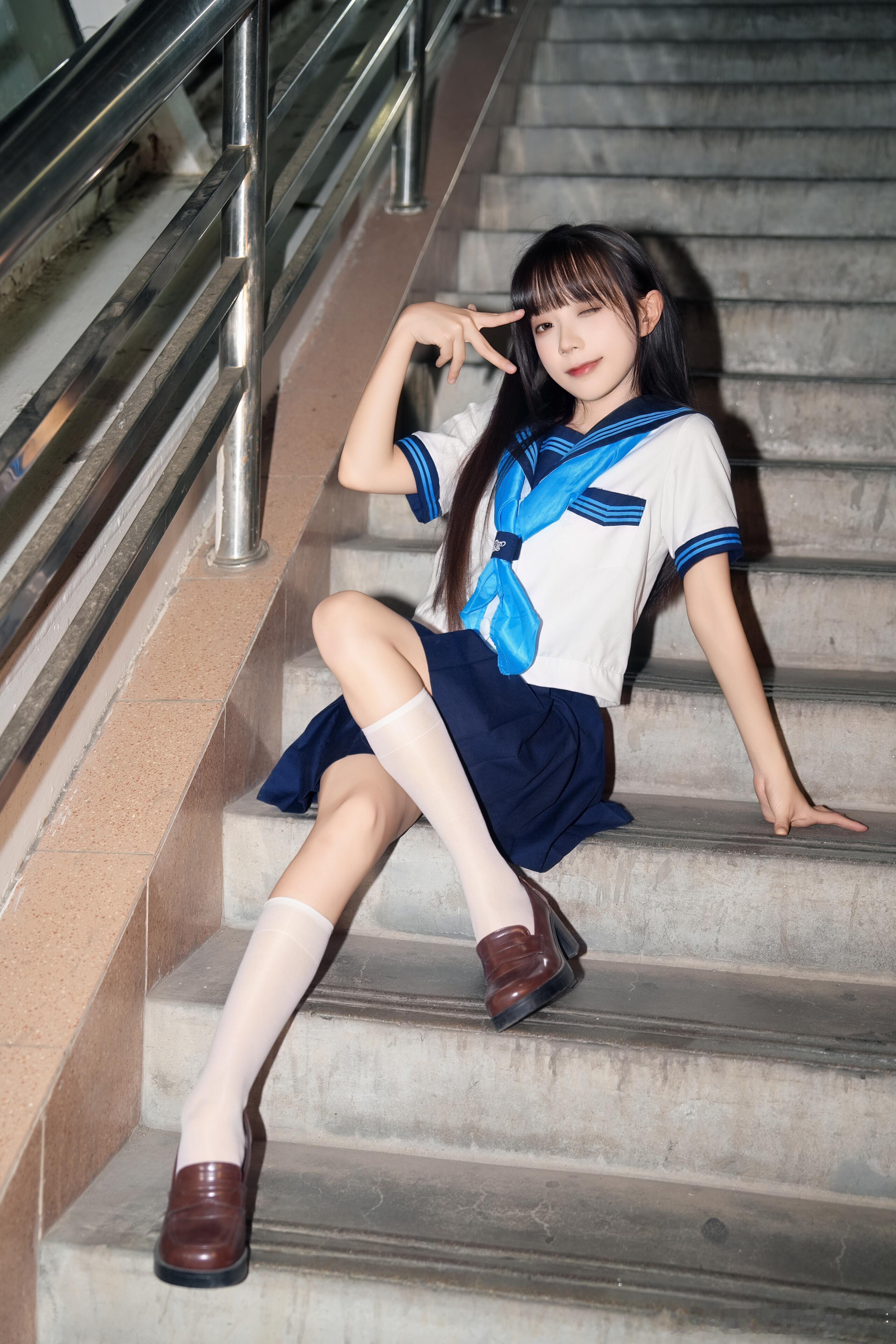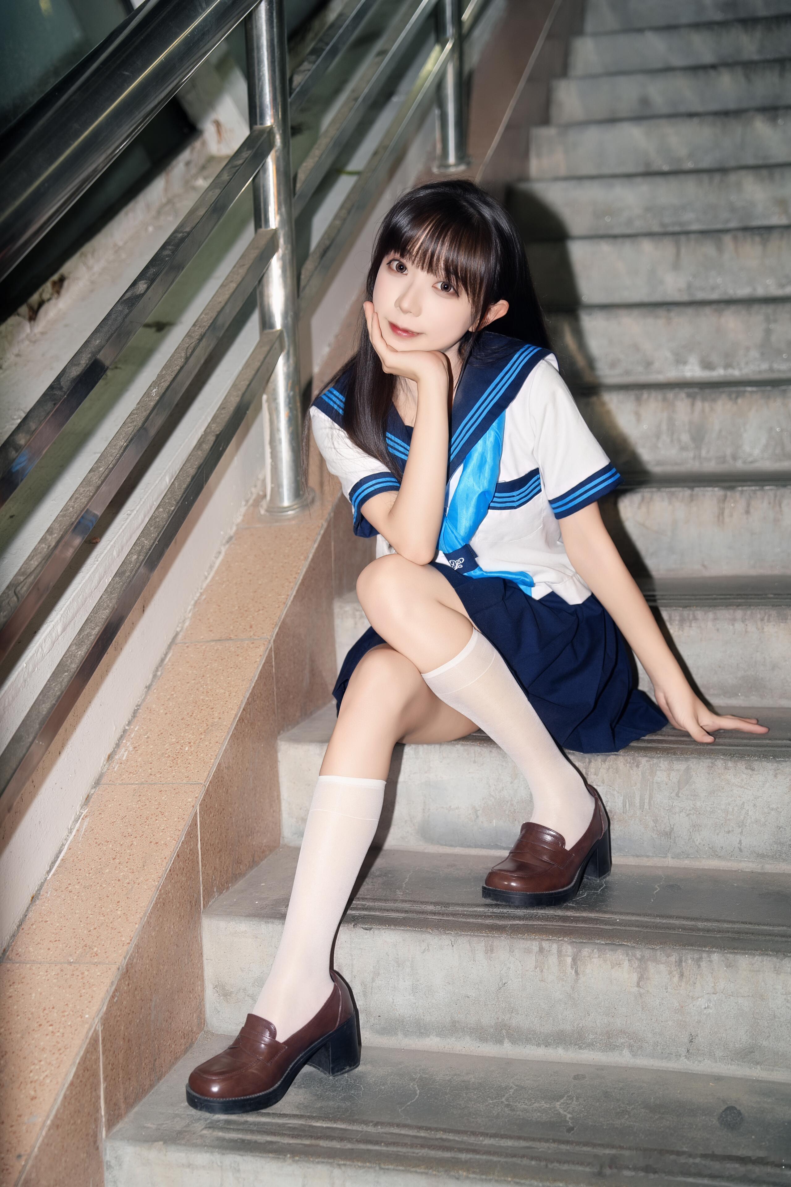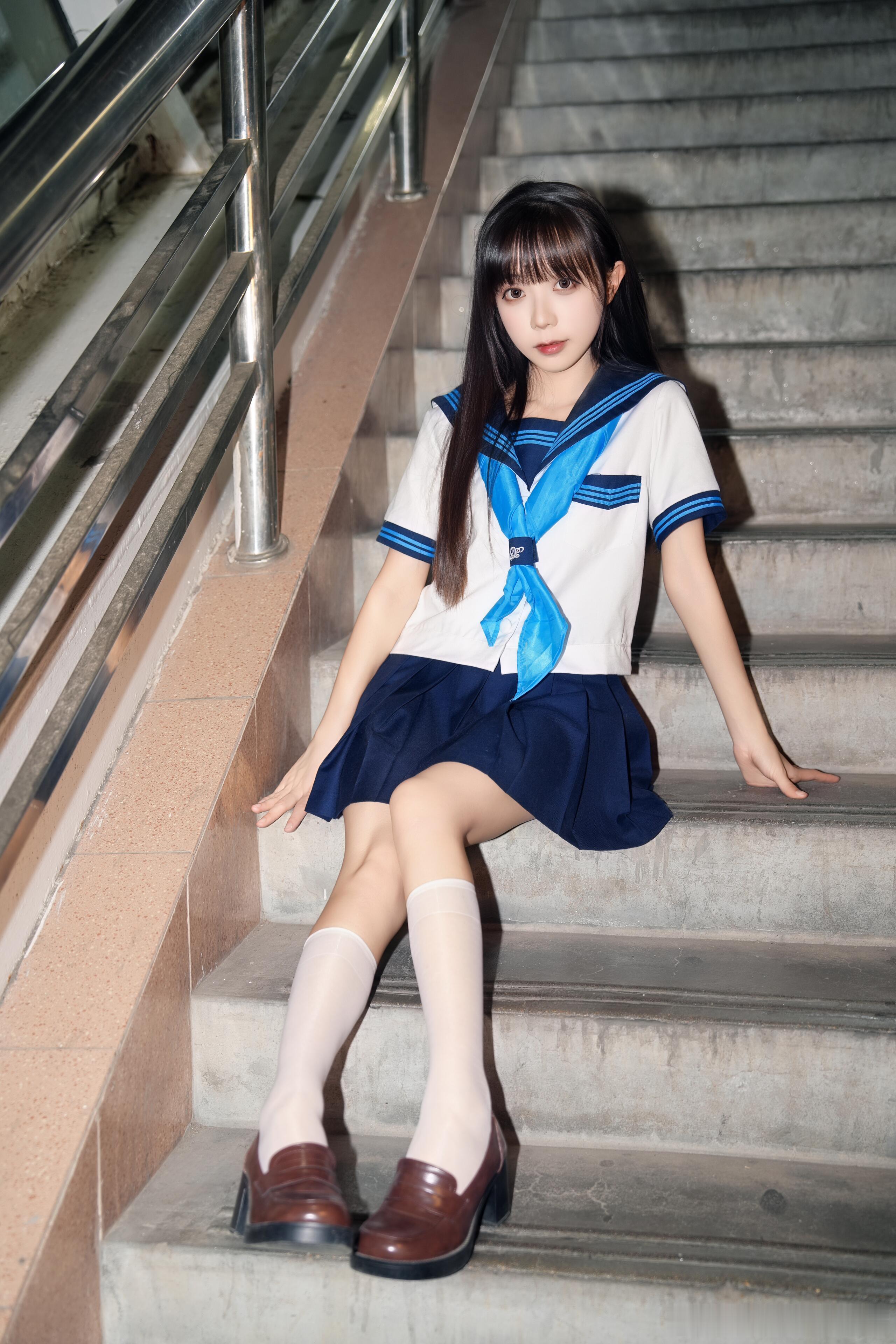 长筒白袜卡在小腿最细处,再踩一双厚底玛丽珍鞋,简直拉满了校园俏皮感~